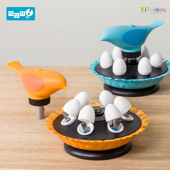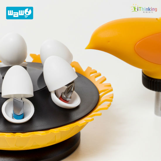 - Eggshell crack open and show the bits inside while the birdie screwdriver is taken up.