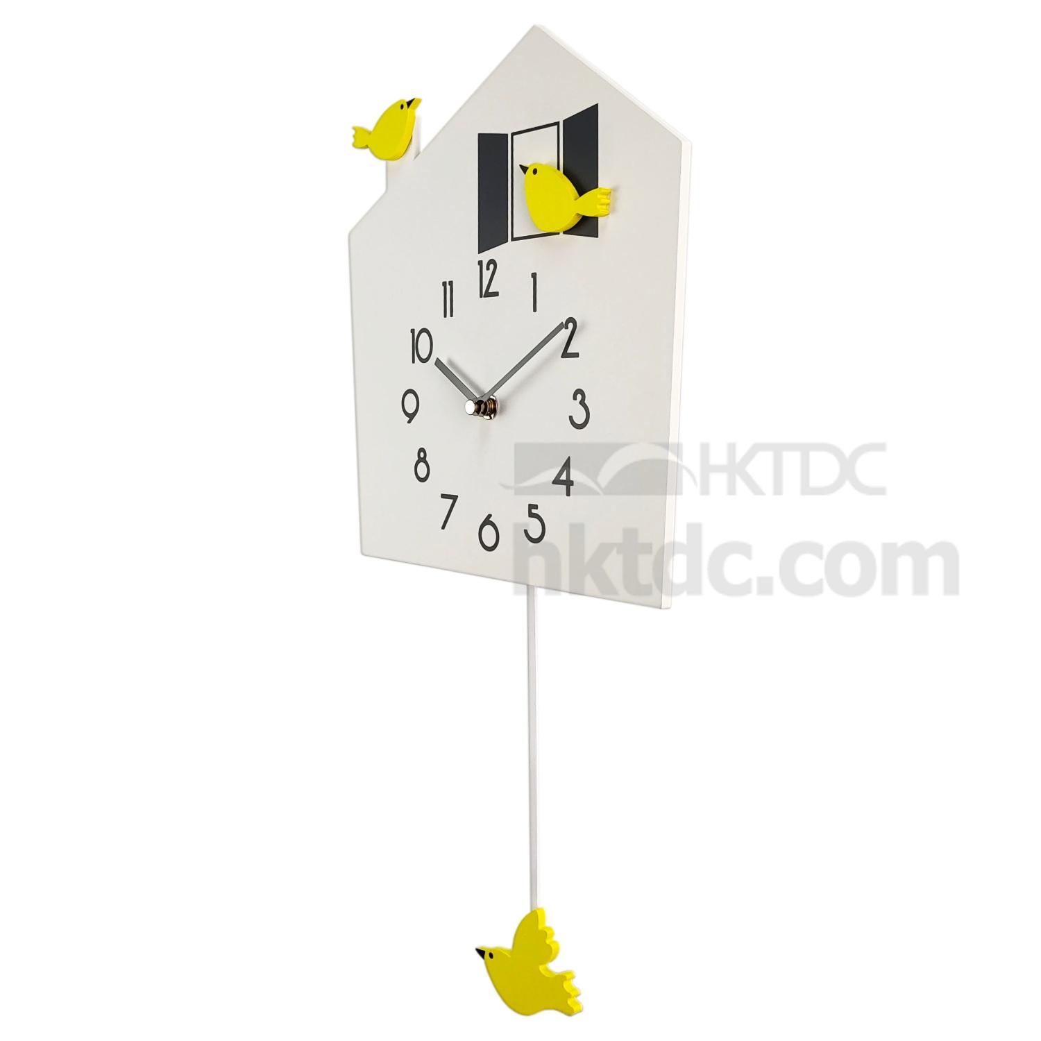 The clock’s case is made with sturdy construction MDF. Beautifully designed as a bird house shape, adds a spark of fun to the existing decor. This wall clock has Arabic numerals and Quartz movement for lasting efficiency and practicality.