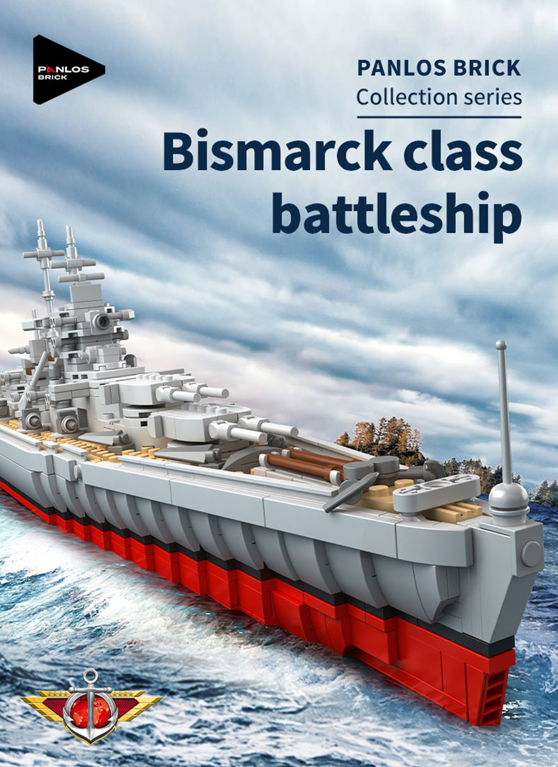 1. Bismarck battleship model, can be handled and pushed forward, with propeller linkage and a display base.