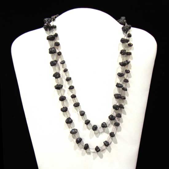 The beauty of this necklace lies in the rough black diamonds in their natural form. The diamonds are linked with a white gold necklace to give out gorgeous glitter. The simple design makes this necklace a perfect choice for ladies.