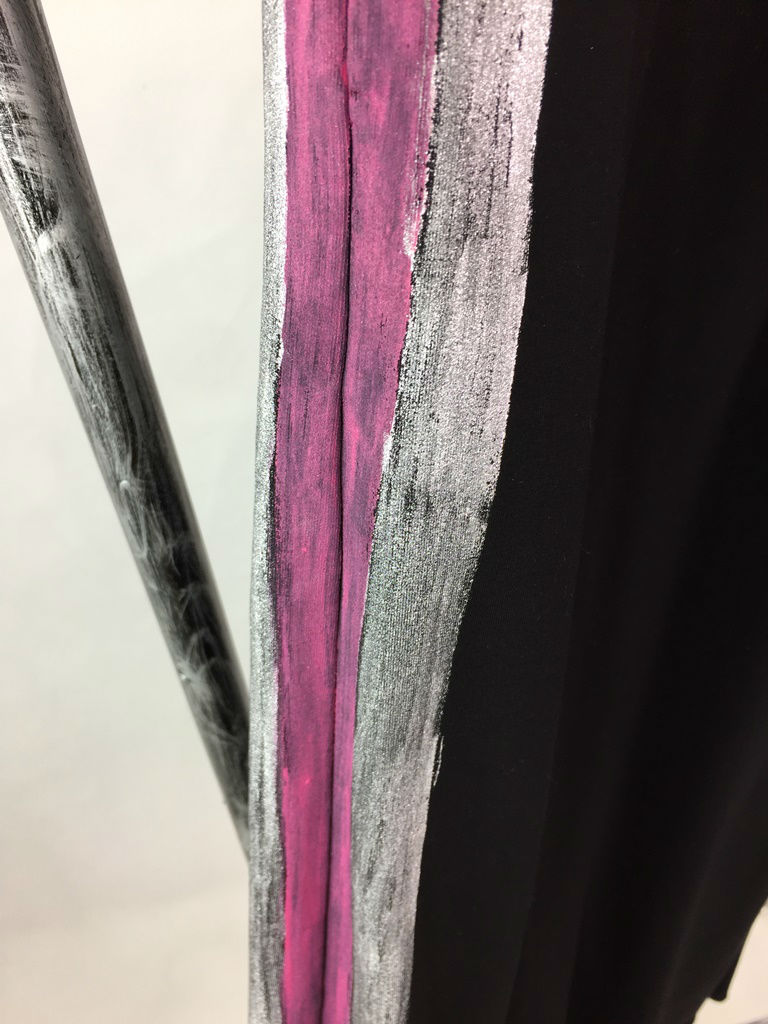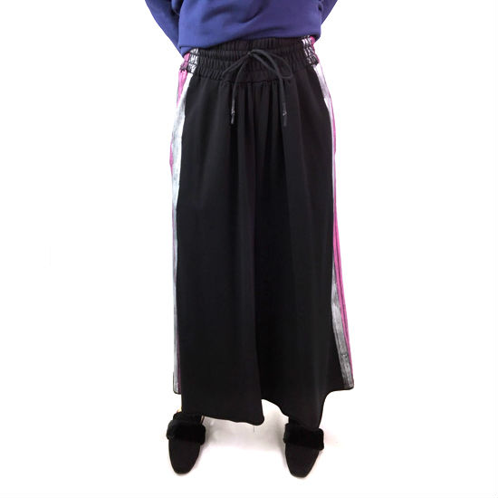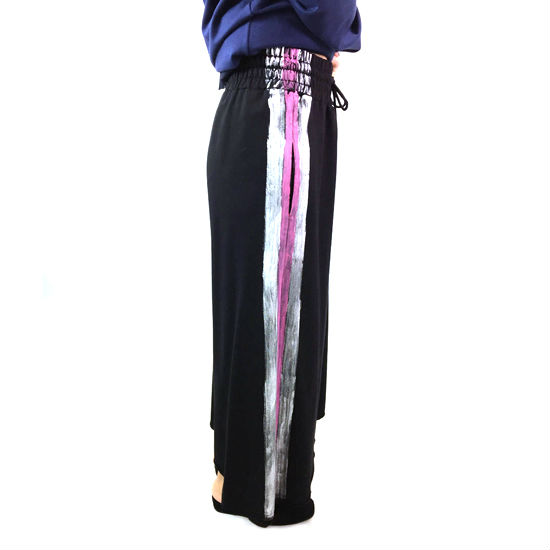 Black French Terry Pants Waist Cord And Side Seam With Silver/Pink Print Stripes