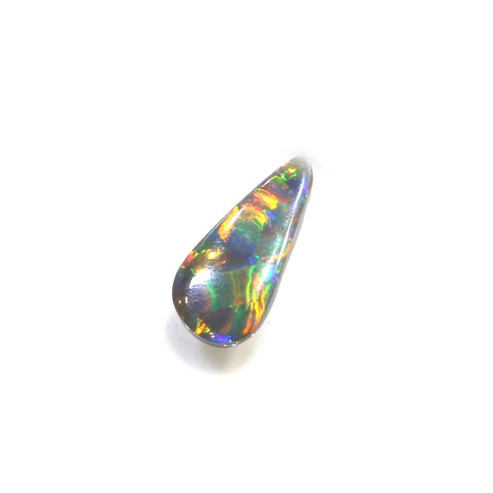 This black opal comes in the shape of a circular cone. The opal has a glossy surface and exhibits green and yellow flashes. Unique and exquisite, this cone-shaped opal is a treasured item for every jewel collector.