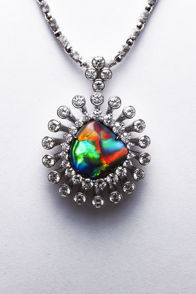 This necklace features the Black Opal stone all the qualities of possible colours in it.