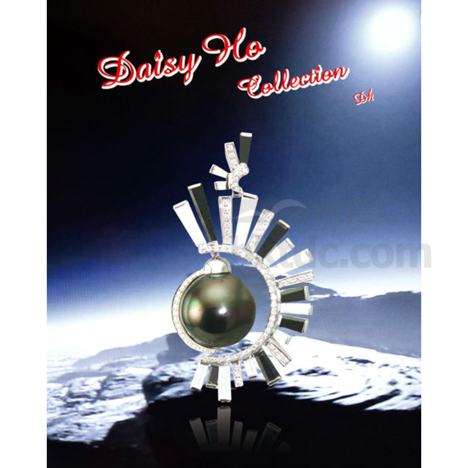 • Materials: Black Pearl with black / white jade (29.2ct) (16mm) round shaped pendant in 750/18K white gold with diamond setting.