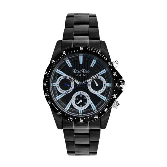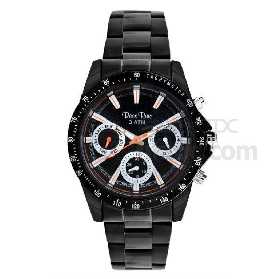 Black Sport Quartz Multifunction Watch with Solid Stainless Steel Band