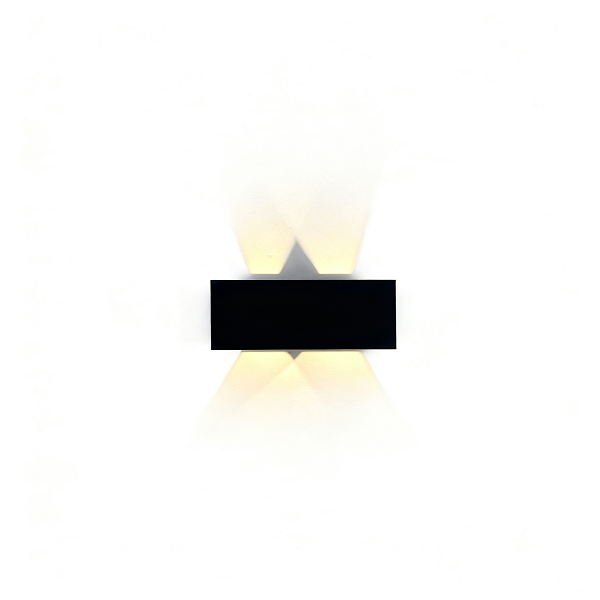 This black up-down wall sconce features a simple black rectangular appearance and is easy to install, simply fixed on the wall. It can project soft light both upwards and downwards, creating a unique light and shadow effect. It can not only provide auxiliary lighting for areas such as corridors and stairwells, but also be used to create an atmosphere in spaces like living rooms and bedrooms, adding a sense of modernity and artistic ambiance to the environment.