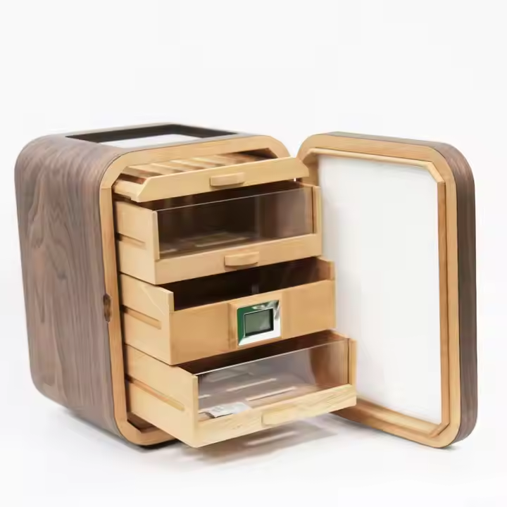 Black Walnut Window High Quality Cigar Cabinet with Cedar Wood Trays
