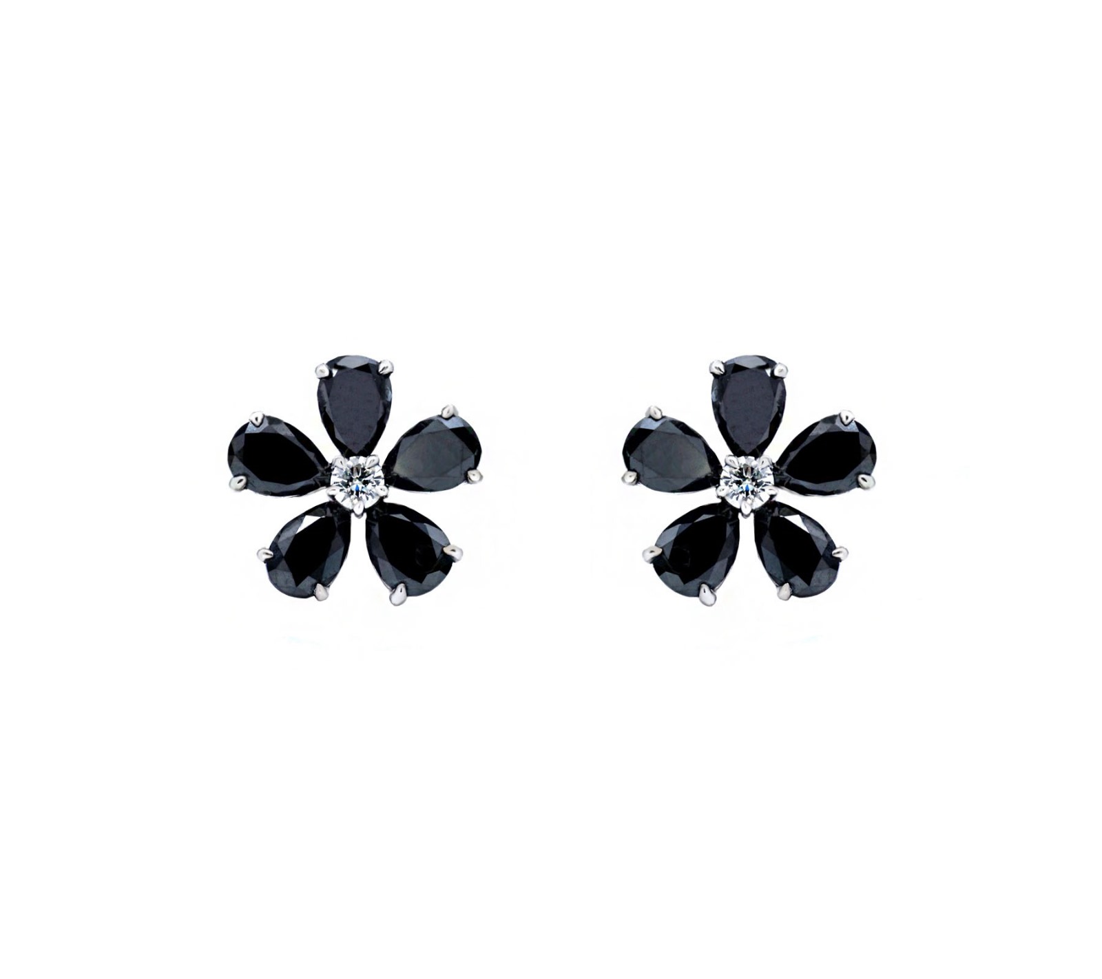 • Natural Pear Shape Black Diamond & Round White Diamond in 18K Gold.