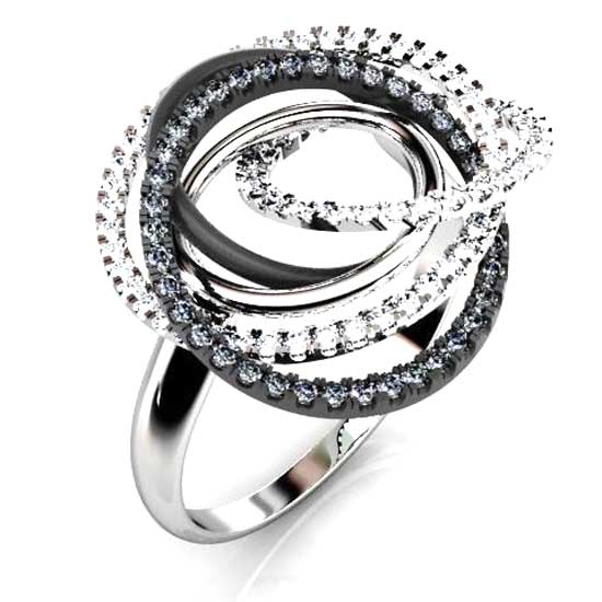 The polished ring is paved with shimmery black and white diamonds. It is crafted with multiple loops that intertwine with each other. This ring will sure add a dash of elegance and uniqueness to your finger.