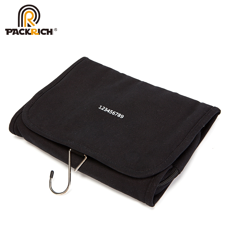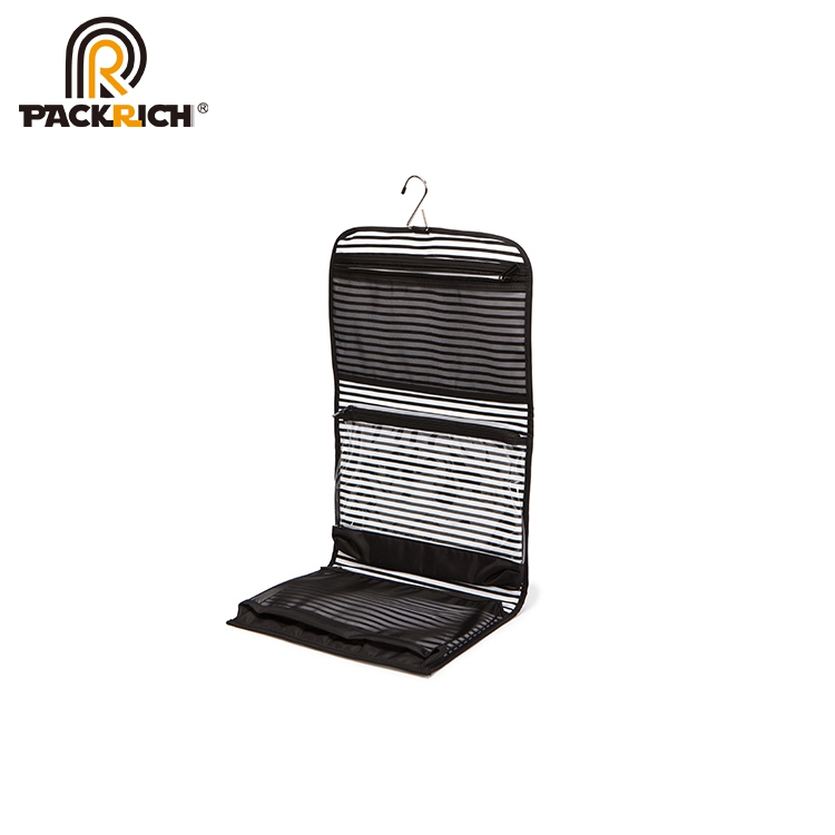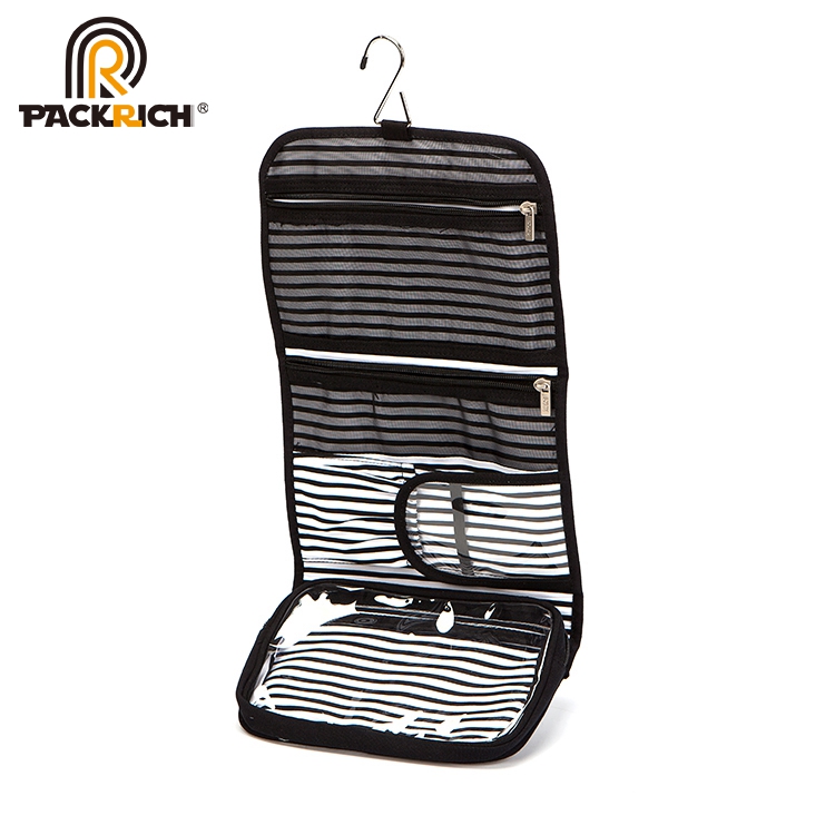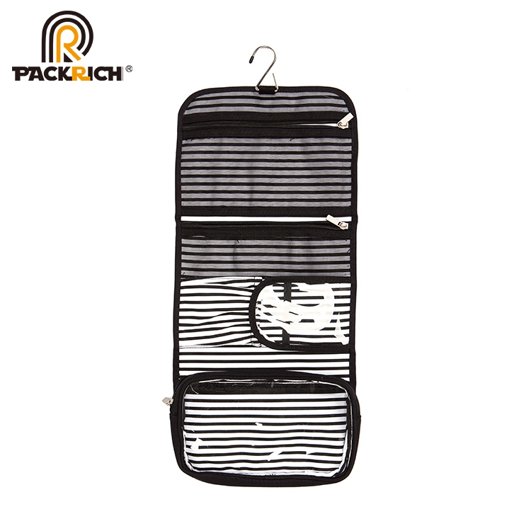 Black strip wholesale canvas cosmetic makeup travel bag