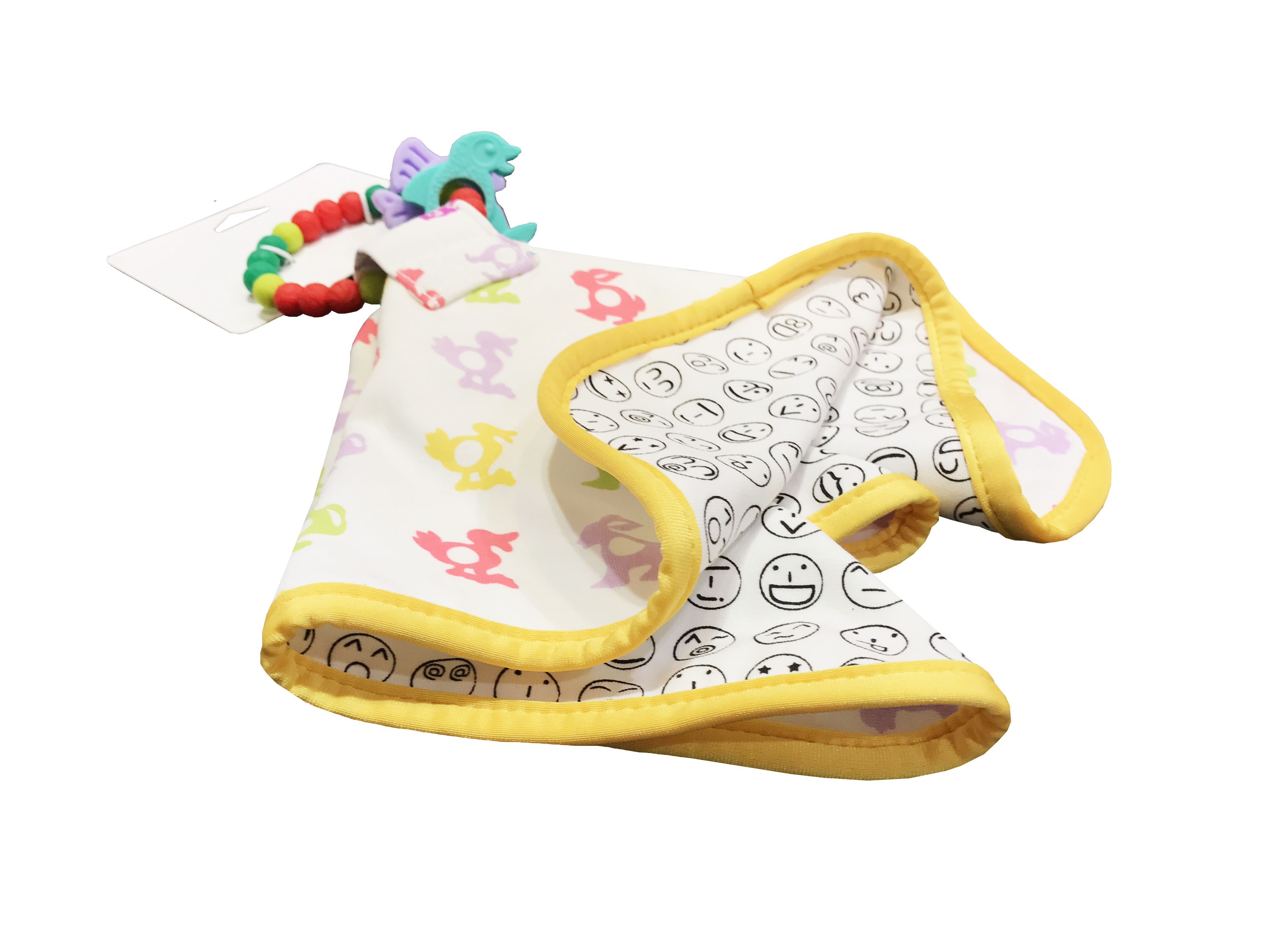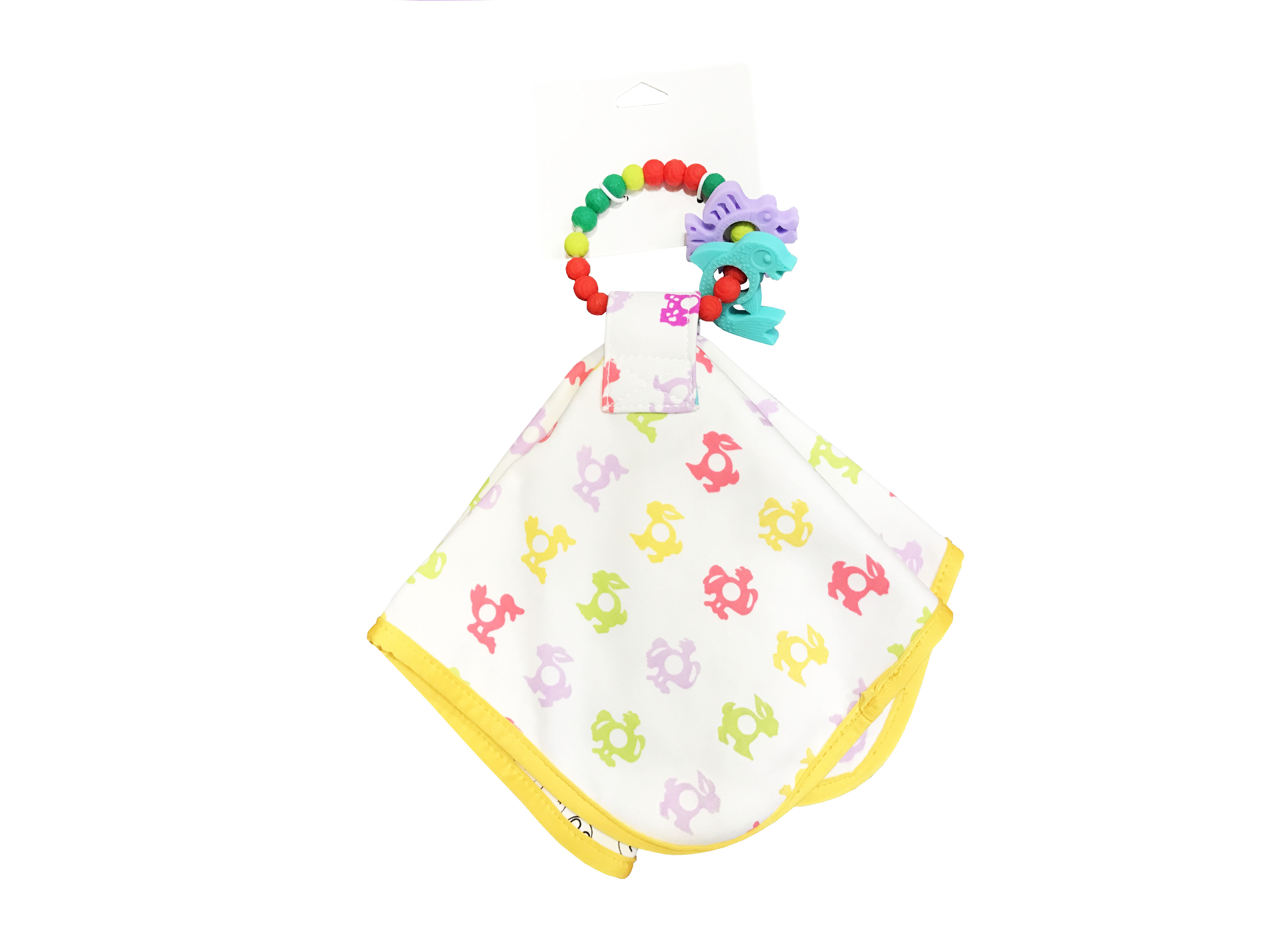 • Soft and high-quality cotton fabric (300x300mm) ; silicone teether dia.60mm)