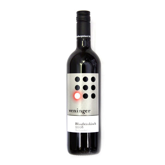 Shown here is a bottle of Blaufrankisch produced in Austria. This wine features the fruity and spicy aromas with sweetness and fragrance of cherries and berries. This wine has pleasant tannins and a beautiful structure.
