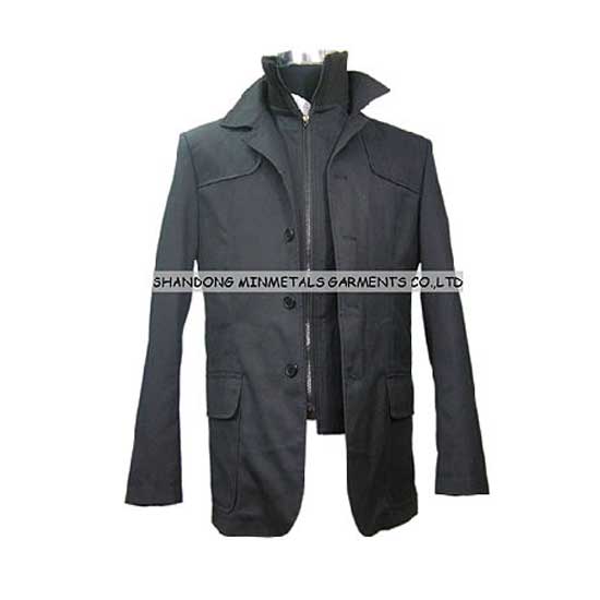 This is a men's wear set including a blazer and a jacket. This stylish blazer comes with the classic notch collar, two side pockets and a button front closure while the jacket features a zip-up closure for convenient wearing. This simple yet trendy set is a great choice for the gentlemen.