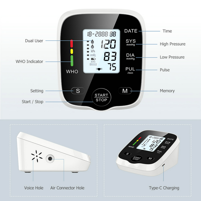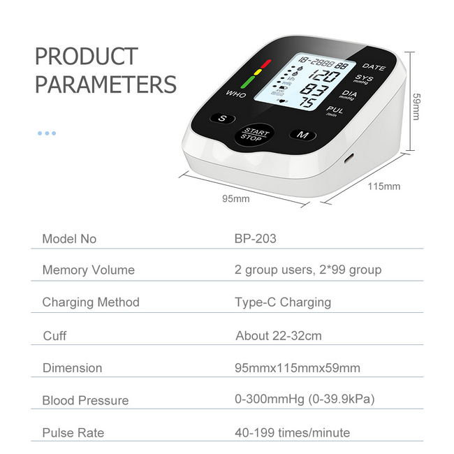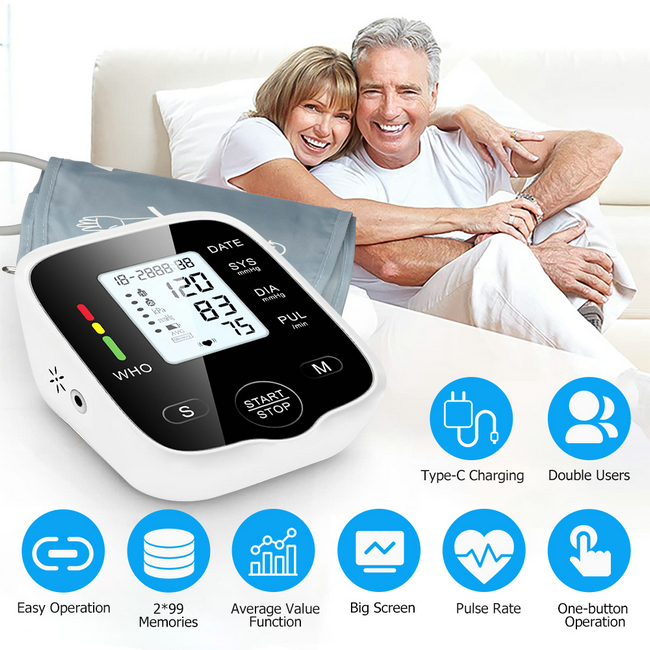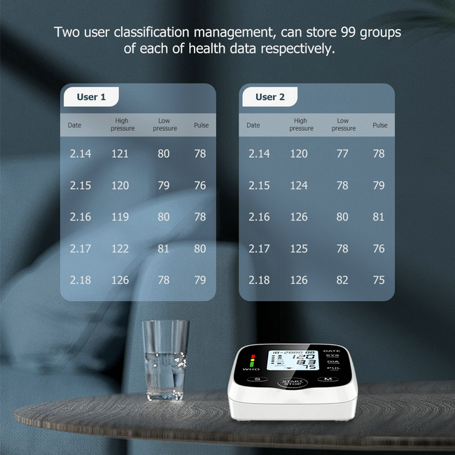 【99 Sets Memory of 2 Users】Our blood pressure monitor can store up to 99 readings of each user, with the date and time stamp. This is very convenient for you to keep track of your blood pressure and health, and it can show the average value of the latest 3 times measurement which makes your readings more accurate.