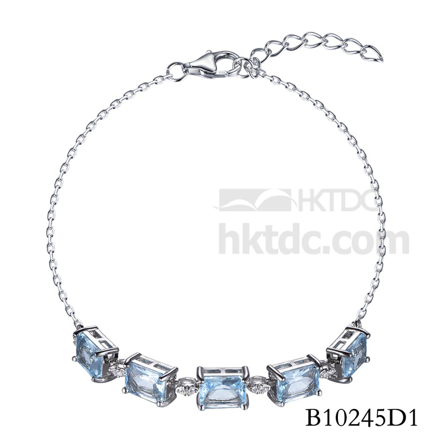 Baguette Cut Blue Glass Over 925 Sterling Silver Bracelet