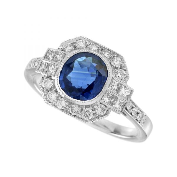 Blue Sapphire Madagascar Diamond Halo Engagement Ring (R4295)