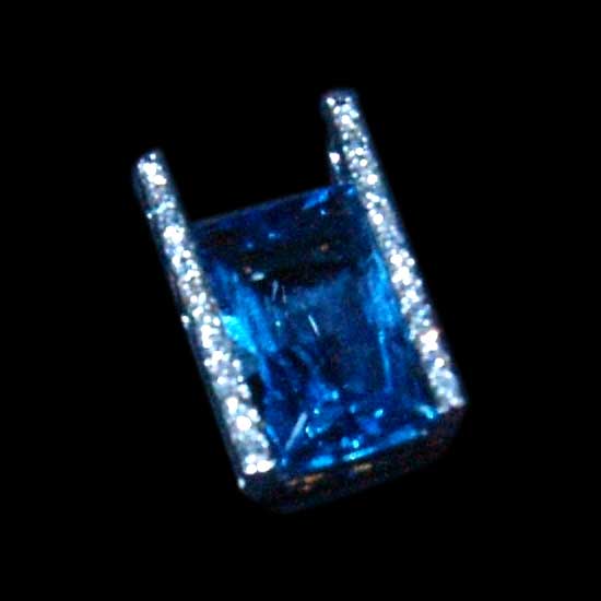 The blue topaz pendant boasts a white diamond setting for lasting shimmer. The rectangular-cut blue topaz shines like a star. This dazzling blue topaz pendant is great for special occasions.