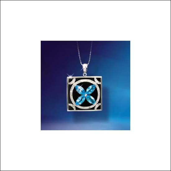 • This square pendant has a black agate square with marquise cut blue topaz