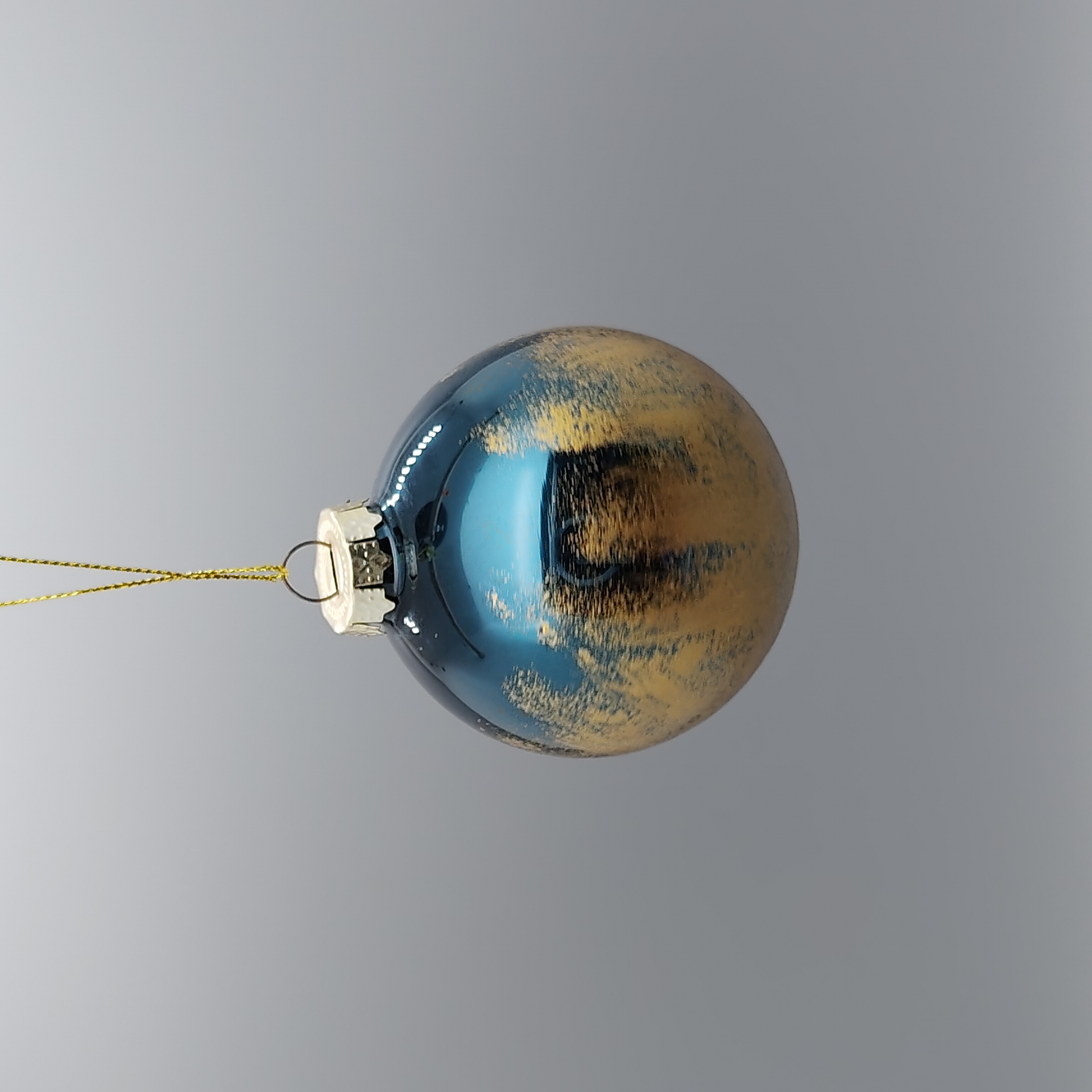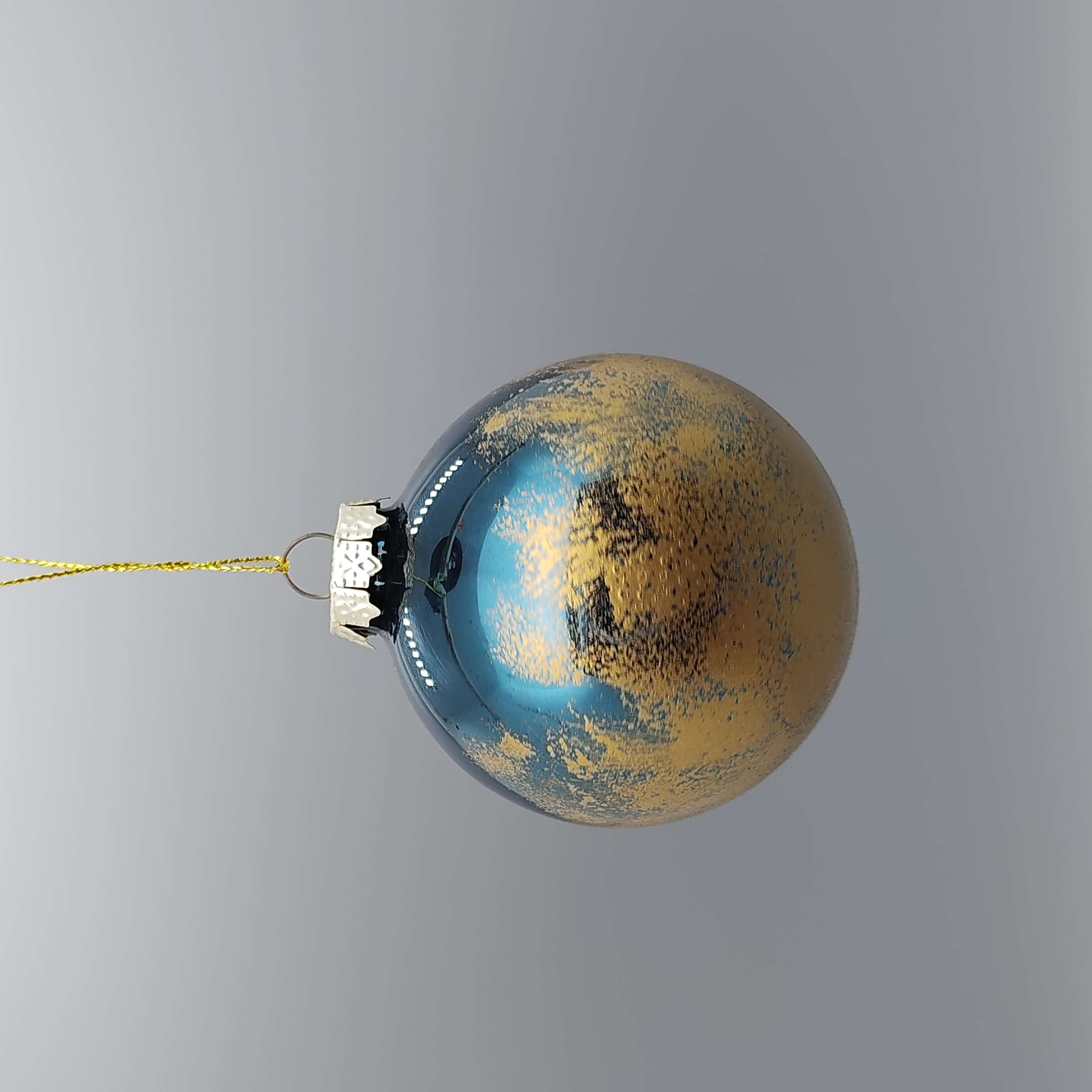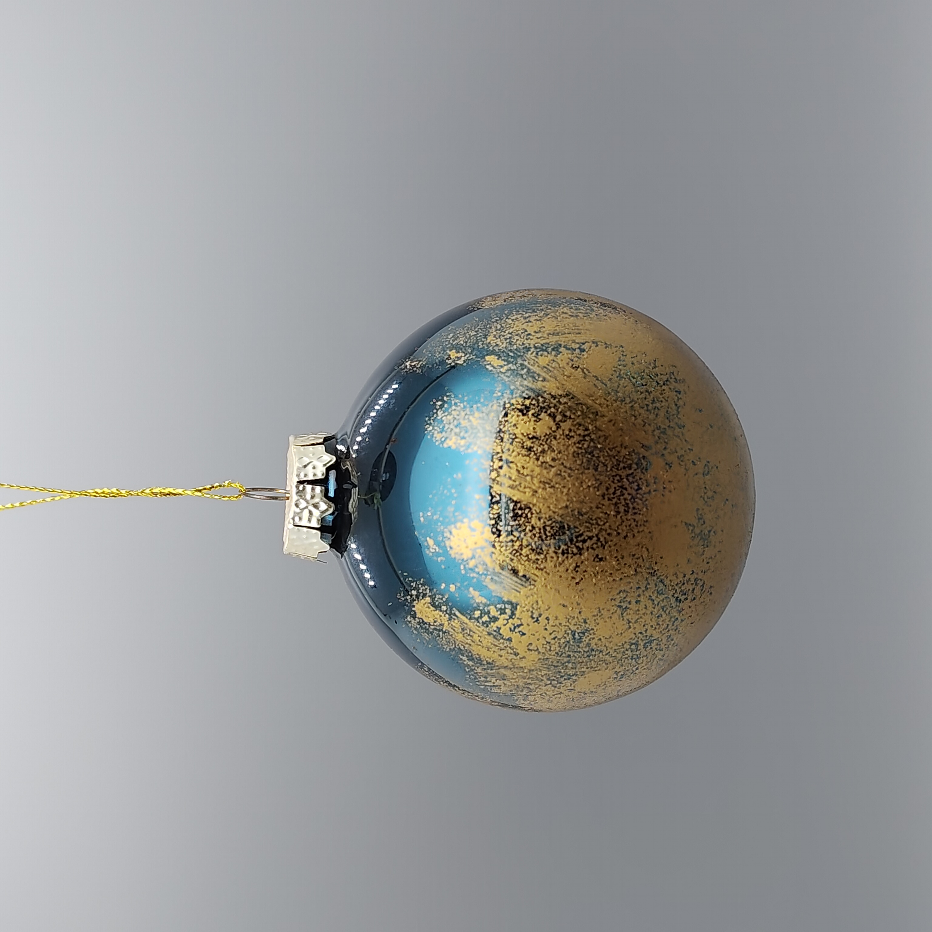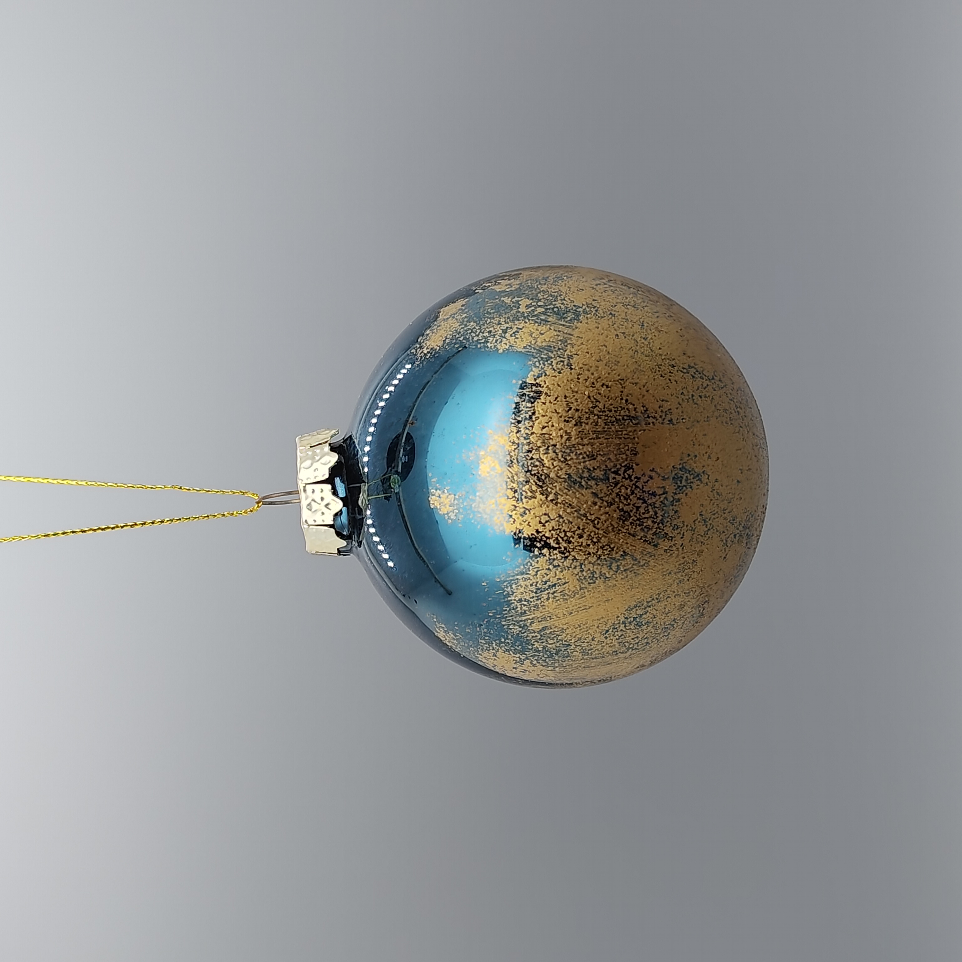 Item Name: Blue and Gold Ombre Glass Christmas Ornament with Glitter Finish