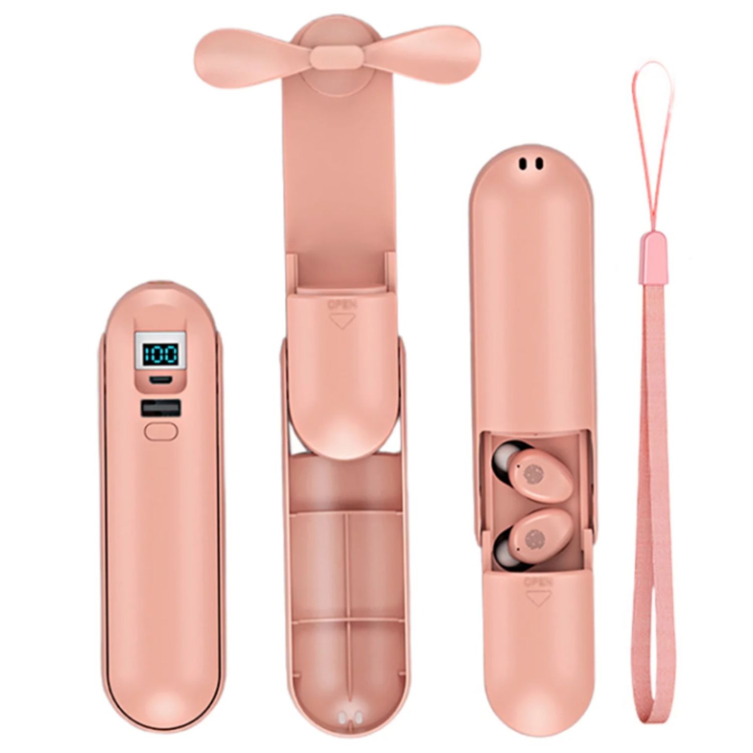 Bluetooth 5.0 Wireless Headphone Earbud with Handheld Fan Charging Box