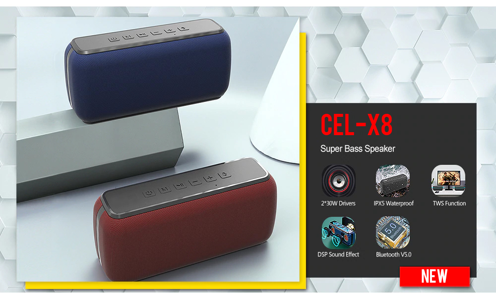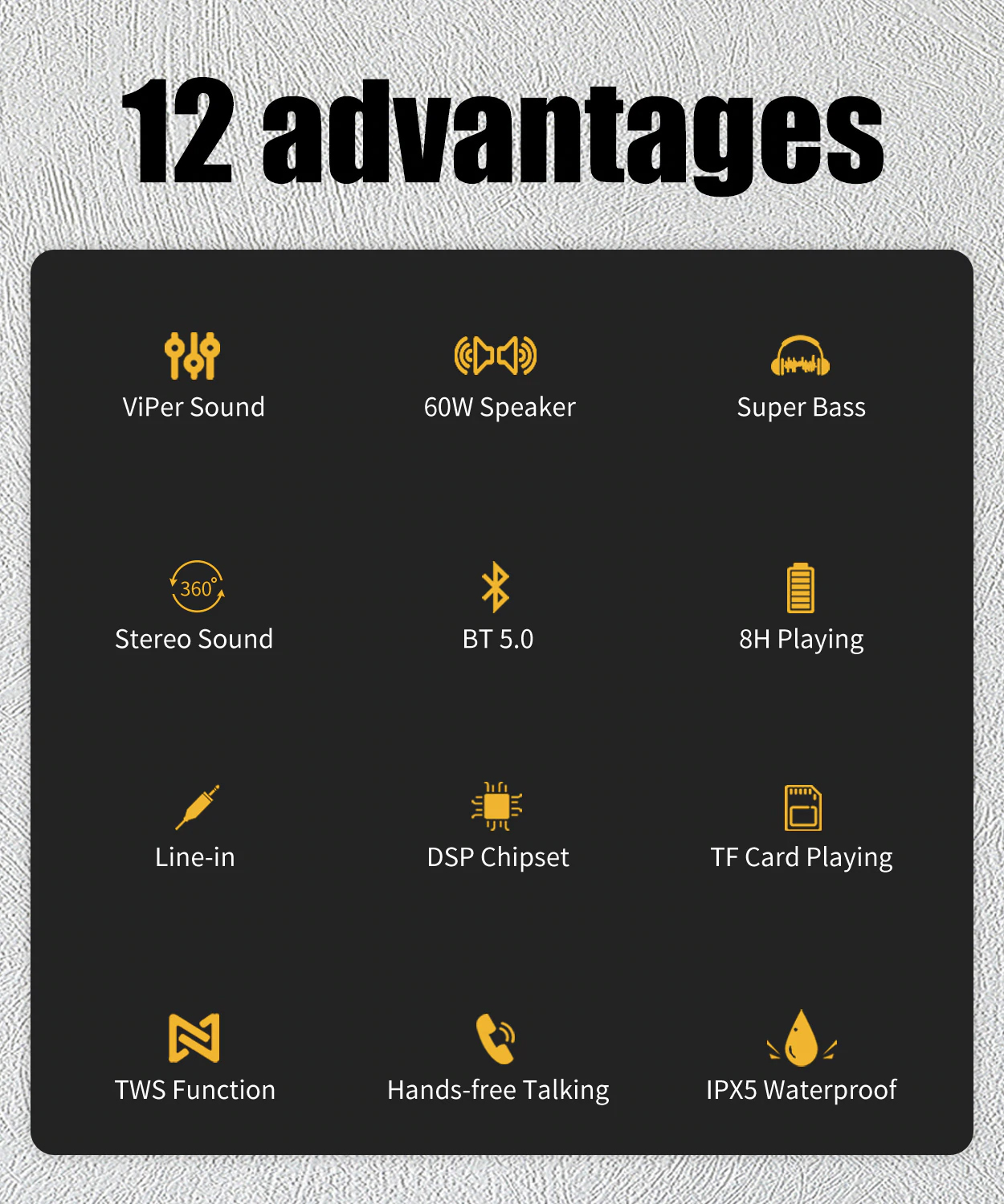 Bluetooth 60W Portable Deep Bass Soundbar IPX5 Waterproof Speaker 360° Surround