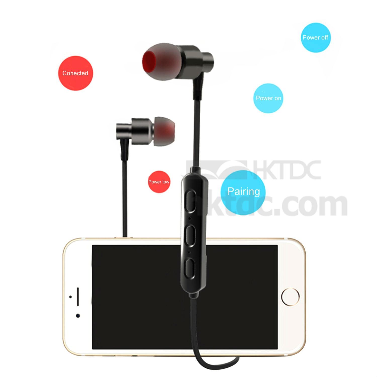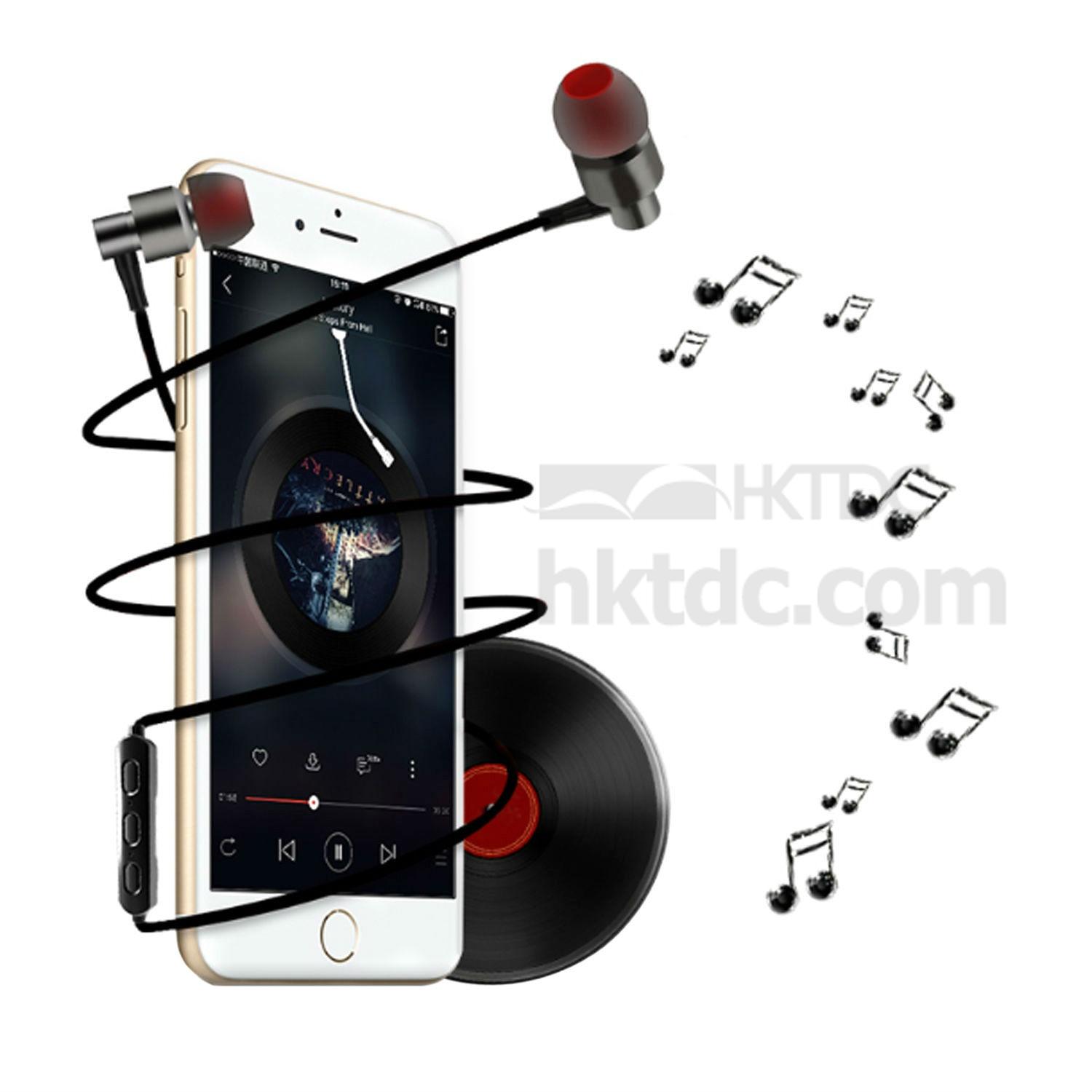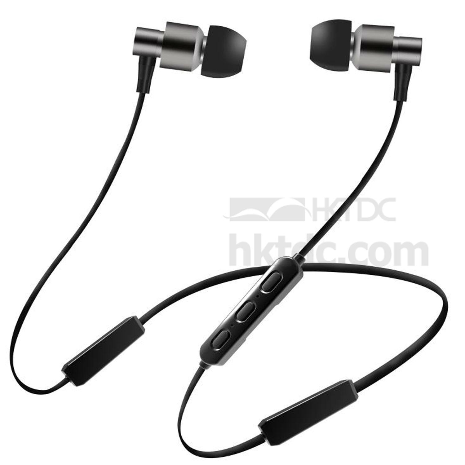 Displayed here is a wireless in-ear stereo headphone in a fashionable design. It offers outstanding studio music quality and has built-in noise reduction and echo cancellation functions to enhance the voice quality. This stereo headphone is suitable for enhanced audio applications and is great for running and sports.