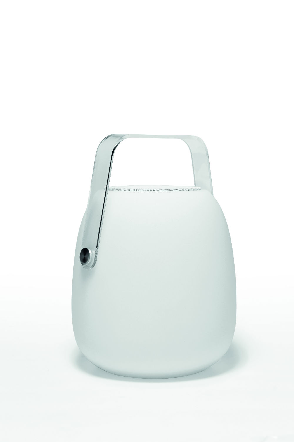 Product includes RGBW LED lighting and speaker. Play music by bluetooth from mobile unit, white color or multicolor sync to the beats of any song, these music lights are ideal for indoor and outdoor recreation. Products are made of high density polyethylene with IP44 certification. They don't have cables, so they're easy to carry anywhere; These lamps use rechargeable batteries for up to 6 hours. It is also equipped with a remote control device to control the lighting effect, color and sound effects from a long distance.