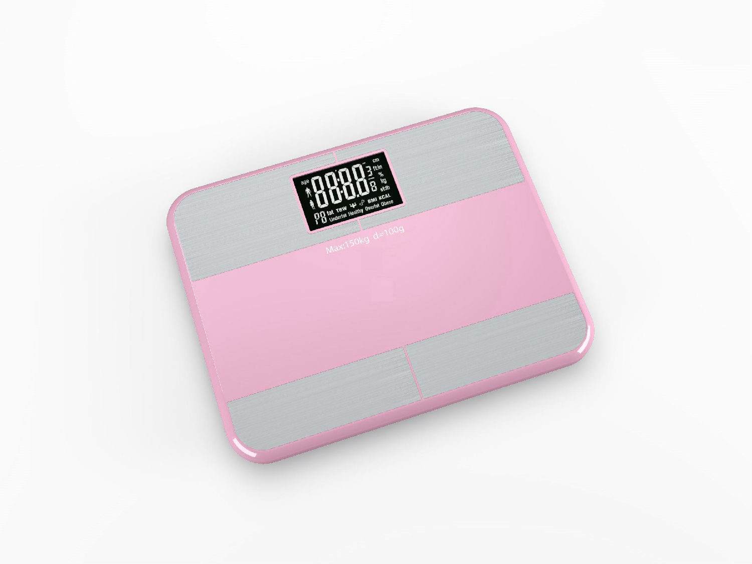 High Precision Strain Gauge Sensors System Large Plastic Platform: 30.0x24.0x2.0cm Capacity: 5-150kg (Unit: kg, lb, st) Graduation: d=100g Extra Large LCD: 81x53mm Tap /Auto Manual Power On Auto Zero - Auto Off Over Load Indication Low Battery Indication Power: 4.5V AAA Battery (3pcs) Memory: 10 Persons Body Fat Measure Range: 5.0-50% Body Hydration Measure Range: 20-70% Body Muscle Measure Range: 15-75% Body Bone Measure Range: 4-15% Calories indication range: 500-5000 Product Size: 30.0x24.0x2.3cm Color box size: 33.5x28.5x5.5cm Carton size: 35.5x30.3x34.5cm Qty/Ctn: 6PCS N.W.: 7.9kg/ctn G.W.: 9.5kg/ctn Loading Qty: 4500PCS/20' GP Loading Qty: 9360PCS/40' GP Loading Qty: 10980PCS/40' HQ