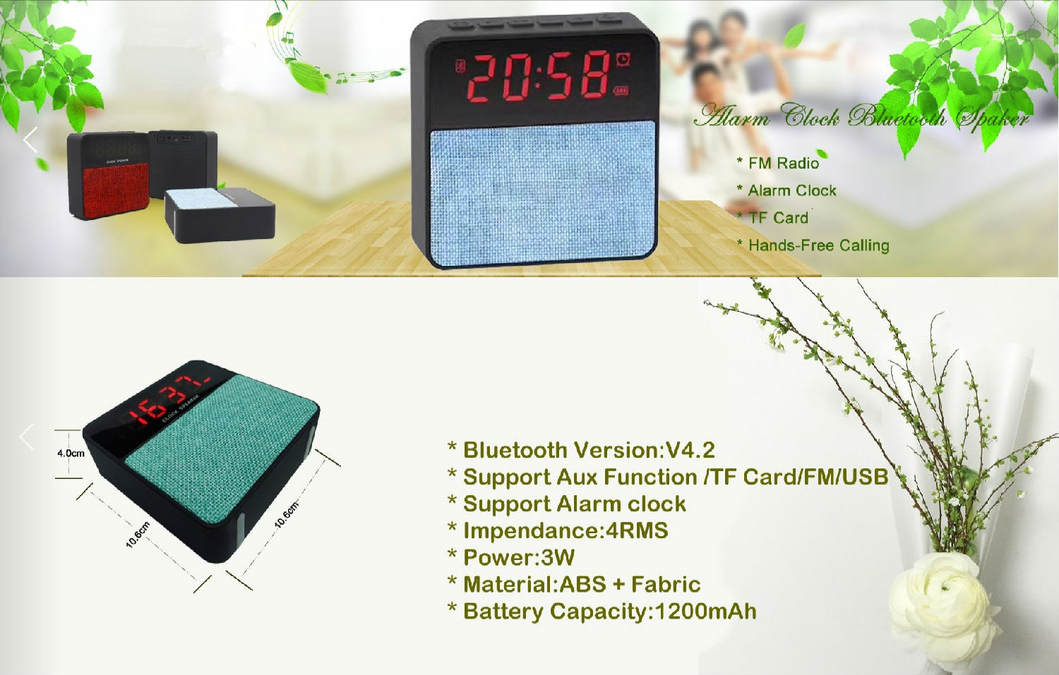 • Support Aux Function / TF Card / FM / USB