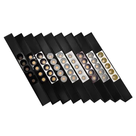 The 15° / 30° / 45° / 50° / 50x50° / 35x75° louver or TRI lens plus the Wall washer louver are satisfying most of the application.