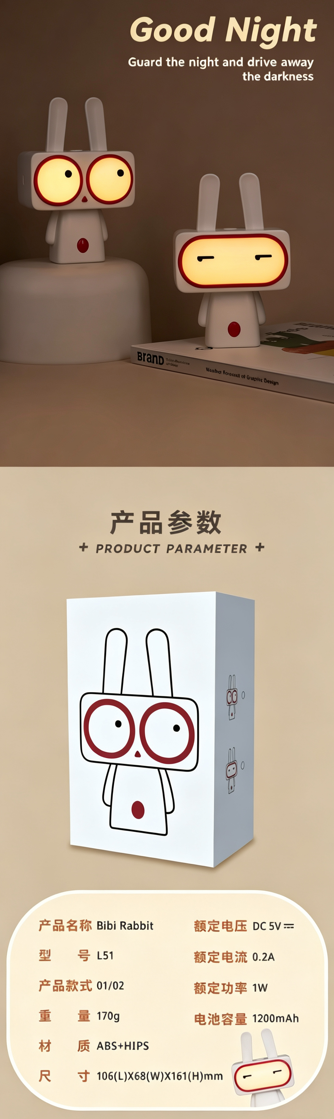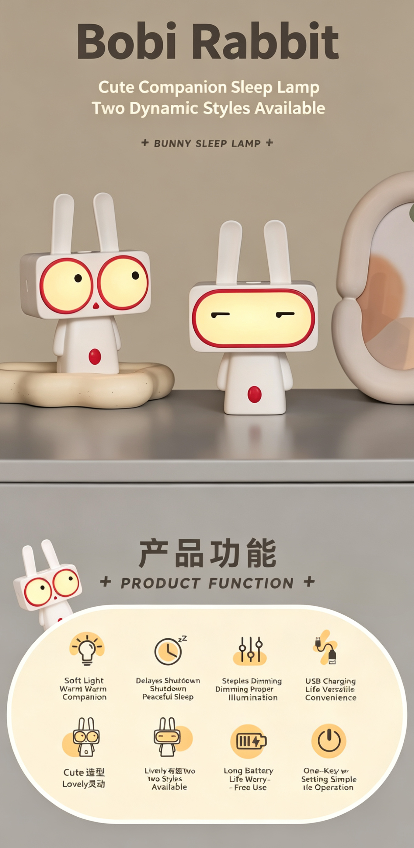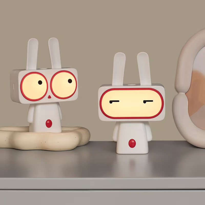 Cute Bobbi Bunny Night Light, Rechargeable Cartoon Rabbit Lamp, Big Eye Bunny Bedside Lamp for Kids