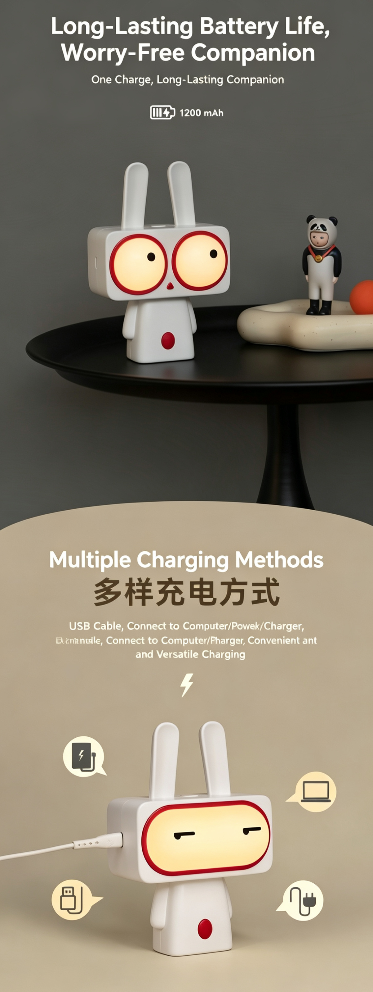 Powered by a 1200mAh rechargeable battery, it offers long-lasting use and convenient USB charging via multiple devices. With a simple one-key operation, it's easy for kids to use independently. A great gift for children to decorate their rooms and accompany them through the night.