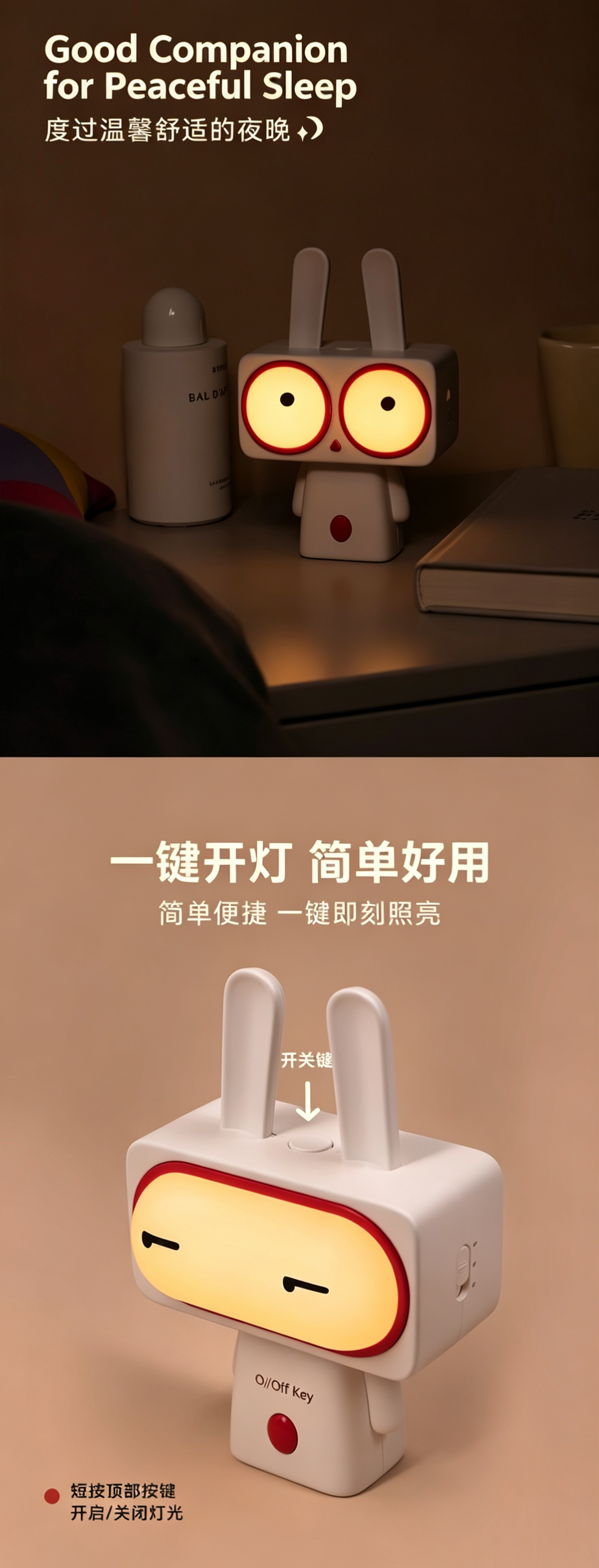This cute Bobbi Bunny night light is the perfect bedtime companion for kids! With its fun cartoon rabbit design (2 styles available), it adds a playful touch to any bedroom while providing soft, warm light for a cozy night's sleep.