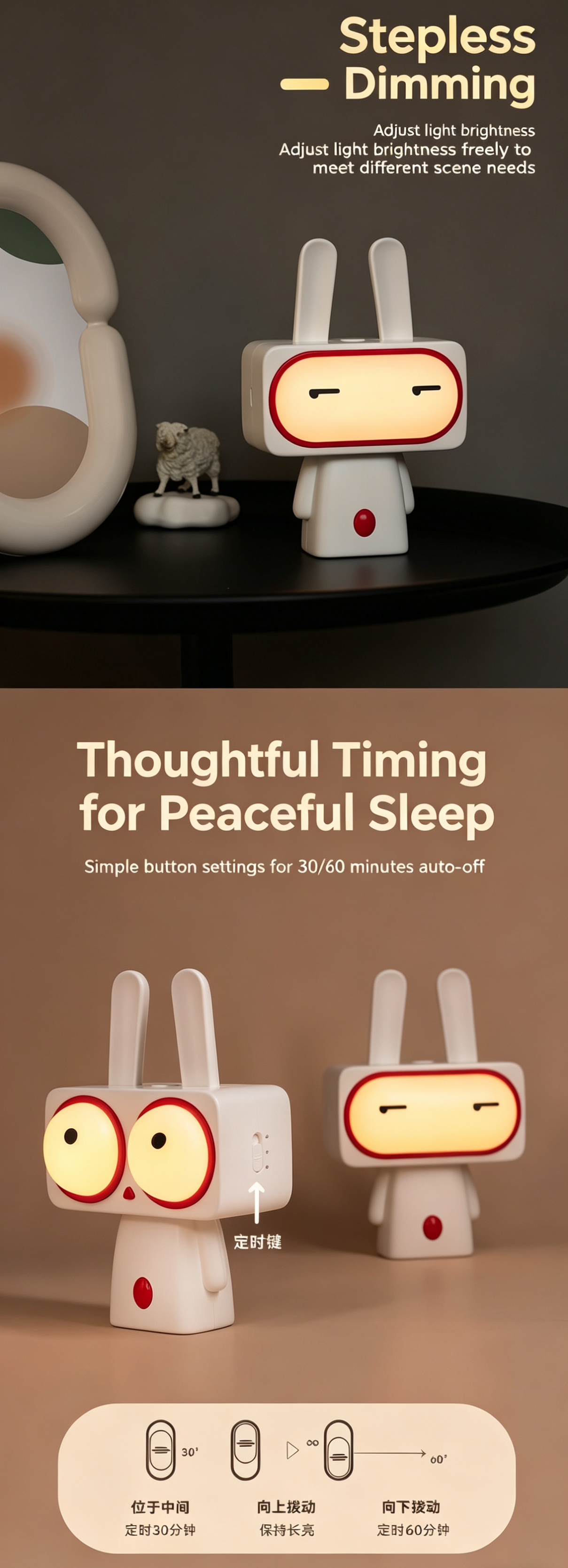 - 🐰 Adorable Bunny Design - 2 cute styles (Big Eye / Sleepy Eye), fun shape to decorate kids' rooms