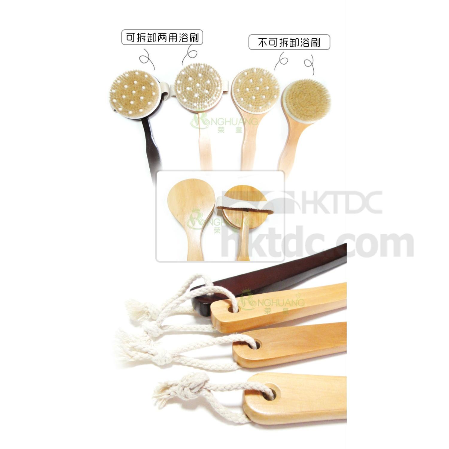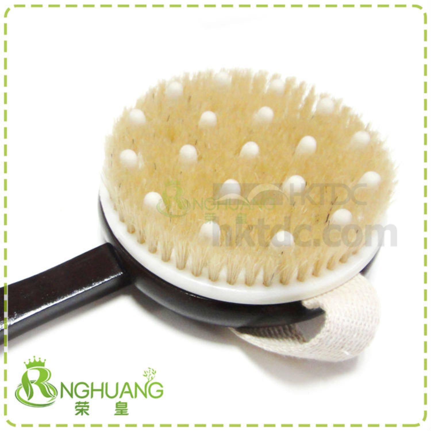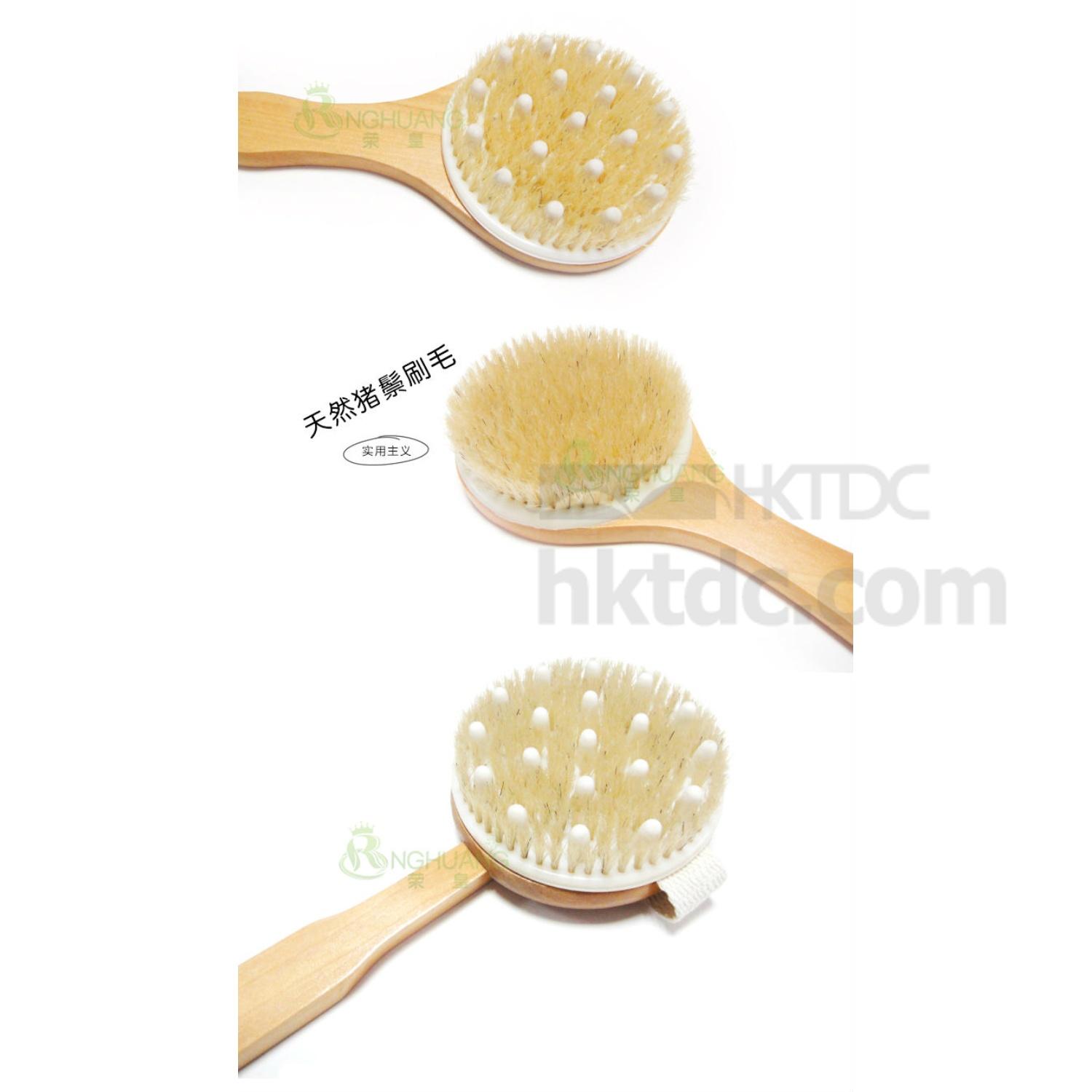 This brush is a versatile long handled (17inches) shower brush with a durable and detachable head and soft and natural bristles that clean and exfoliate the skin well. Even though tall, this brush is light and very easy to maneuver. Its gripped handle minimizes the risk of slipping while its well-finished design and rounded bristles clean, exfoliate, and fade cellulite well without scratching or irritating the skin. You will enjoy using one. Buy an original to get a 100% Bath Blossom limited guarantee.While shower,the rubber massager beads relaxing your body also.