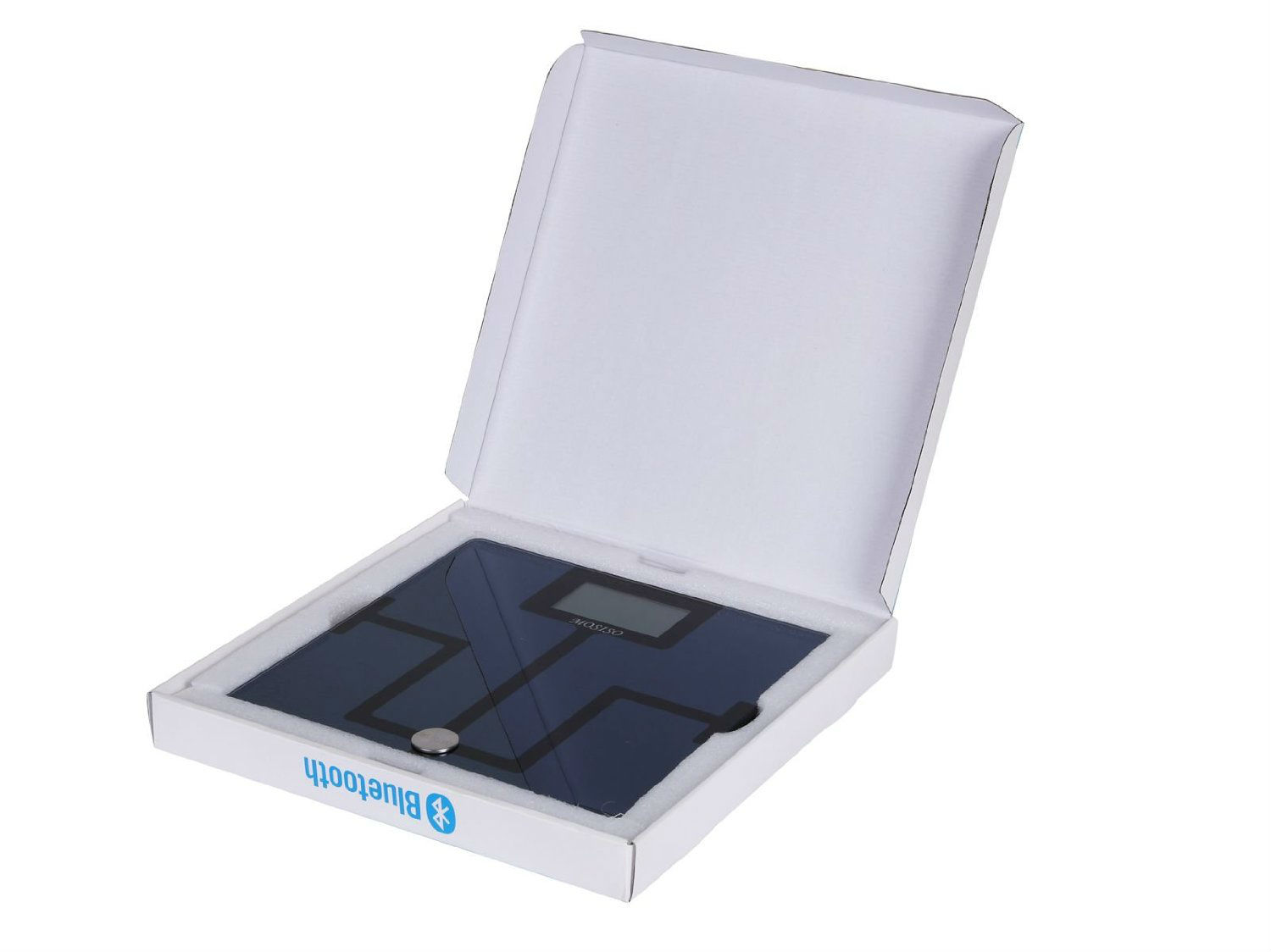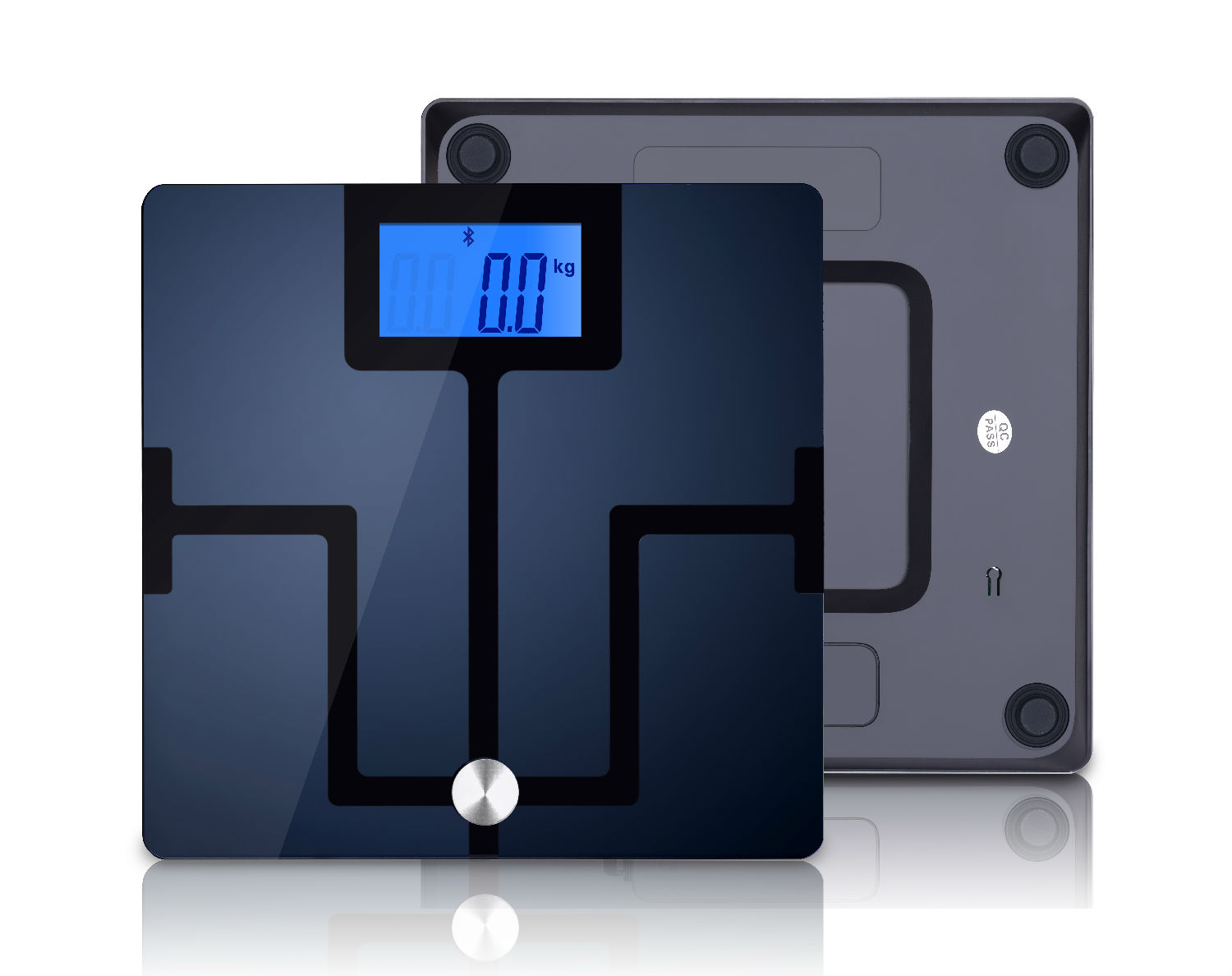 The body fat scales measure 8 parameters by BIA (Bioelectrical Impedance Analysis) principles – with Body weight / Body fat / Body water / BMI / Bone mass / Muscle mass / Visceral fat / Kcal