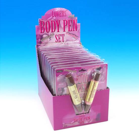 This is a body pen set with two pens in a package. The body pens are harmless and have different favors. Lovers can express love to each other by using body pens to draw and write on their bodies.