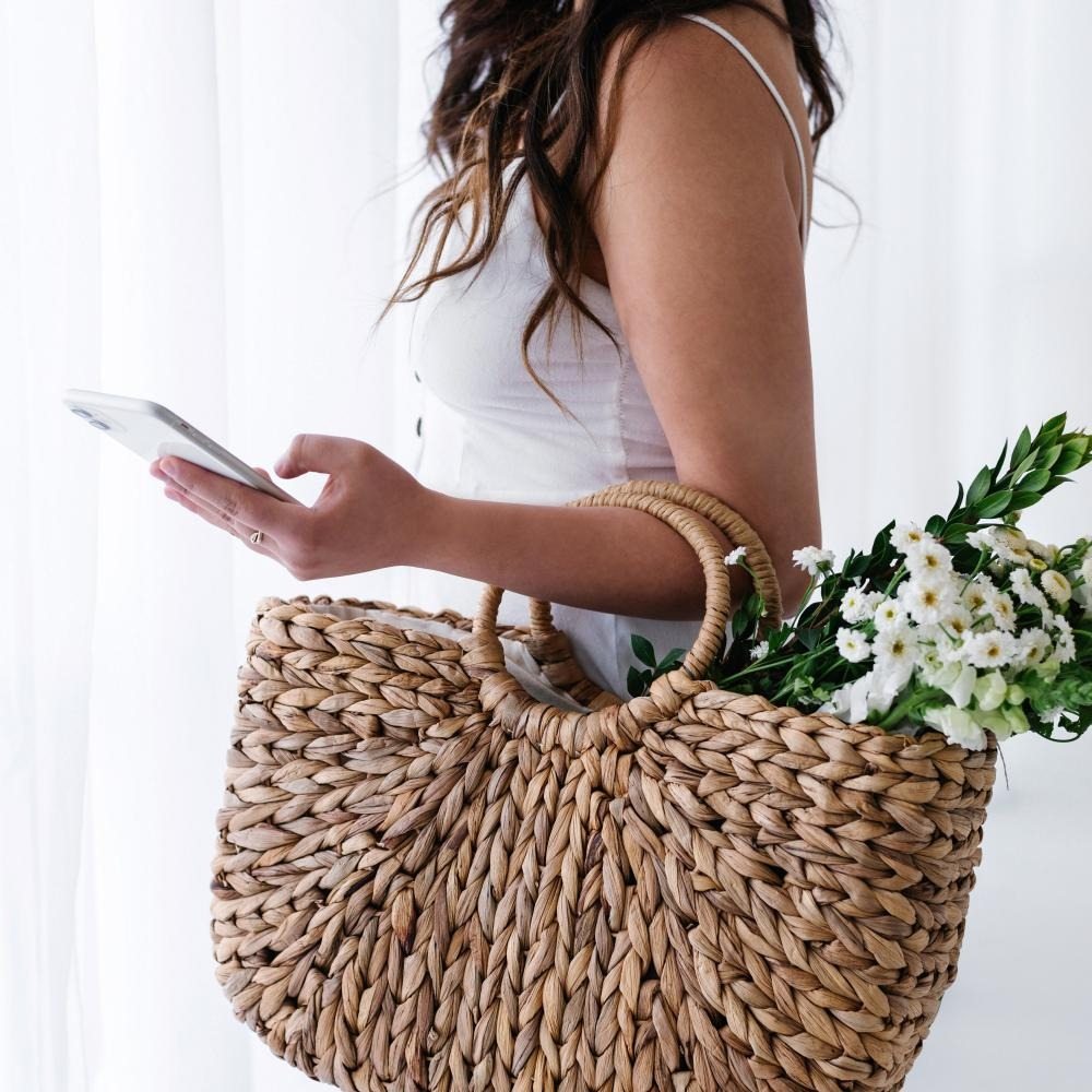 Hand-woven PP straw tote designed for women's summer fashion brands targeting beach and lifestyle markets.