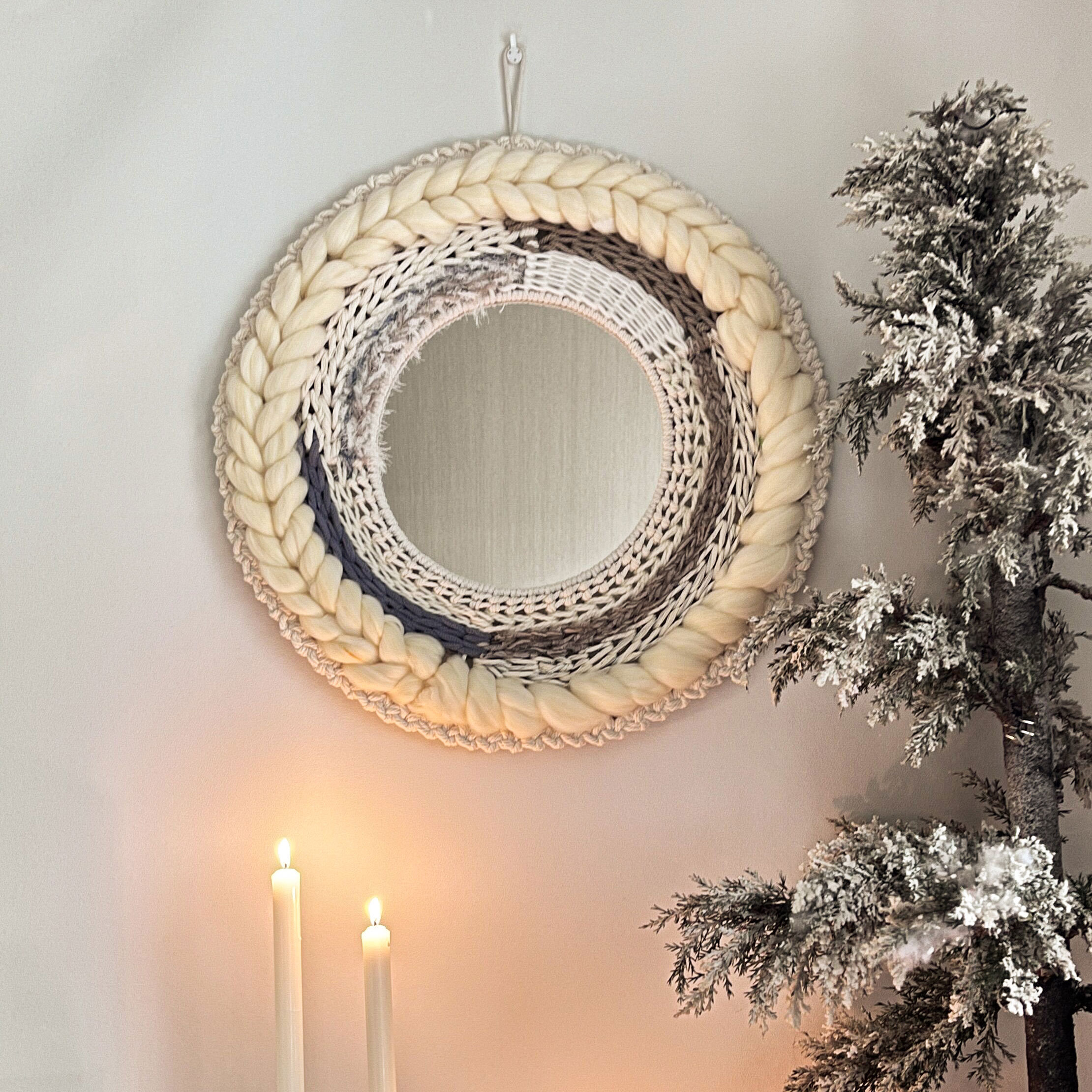 macrame wall decorative mirror