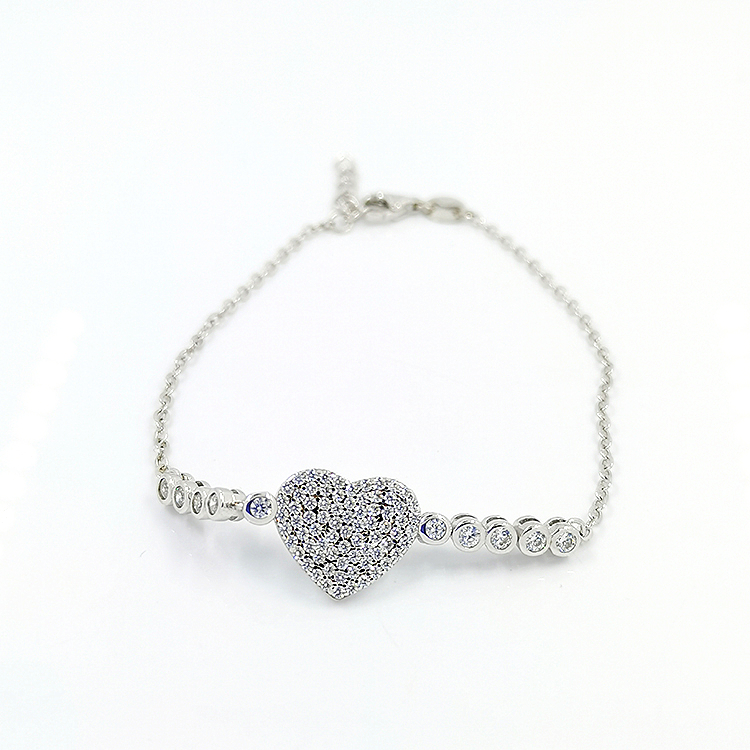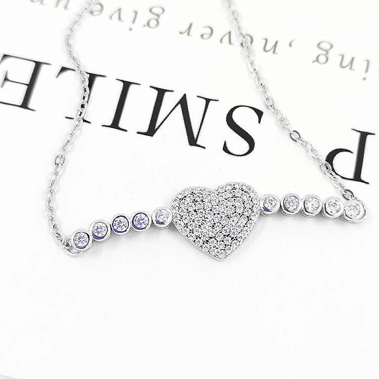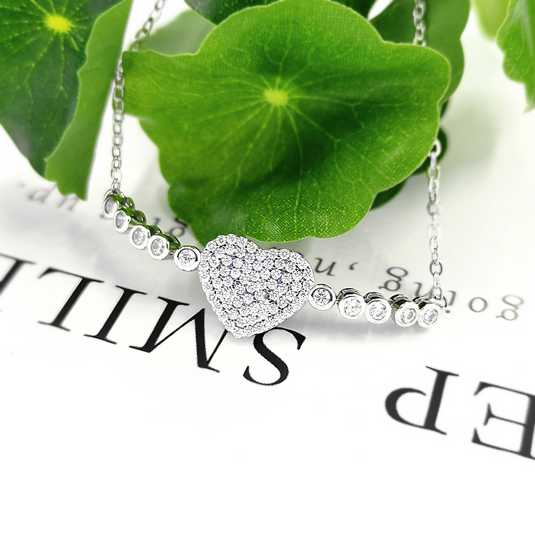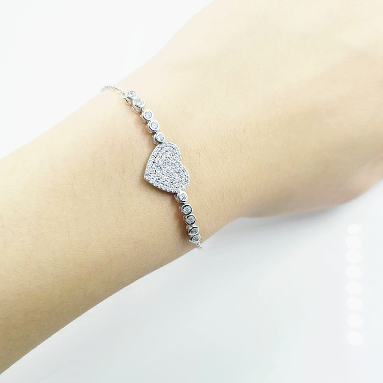 Bohemian fashion zircon women new crystal 925 silver heart shaped charm couples bracelet bangle women