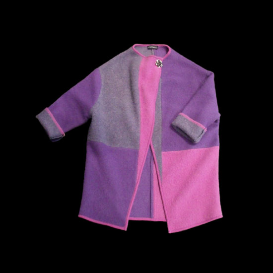 This jacket features a stylish color-blocking design in purple, pink and gray. It is made of quality boiled wool to promise both warmth and comfort. This brilliant jacket can help you create a very chic look.