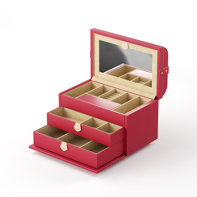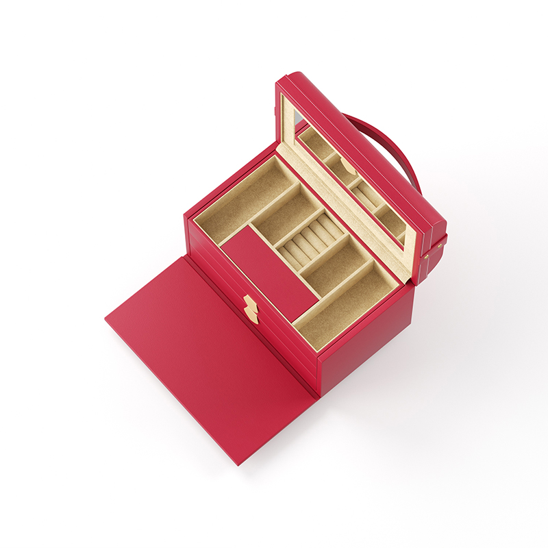 Make a vibrant statement with this bold red leather jewelry case. The rich, colorful leather is both eye-catching and luxurious, protecting a well-organized interior. Ideal for those who love a pop of color, it’s a confident accessory for your most cherished jewels.