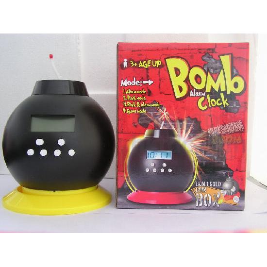 • It will be shaking motion and make a sound when the clock reaches the alarm time, you must put a coin in the slot to stop the shaking motion and alarm rings.