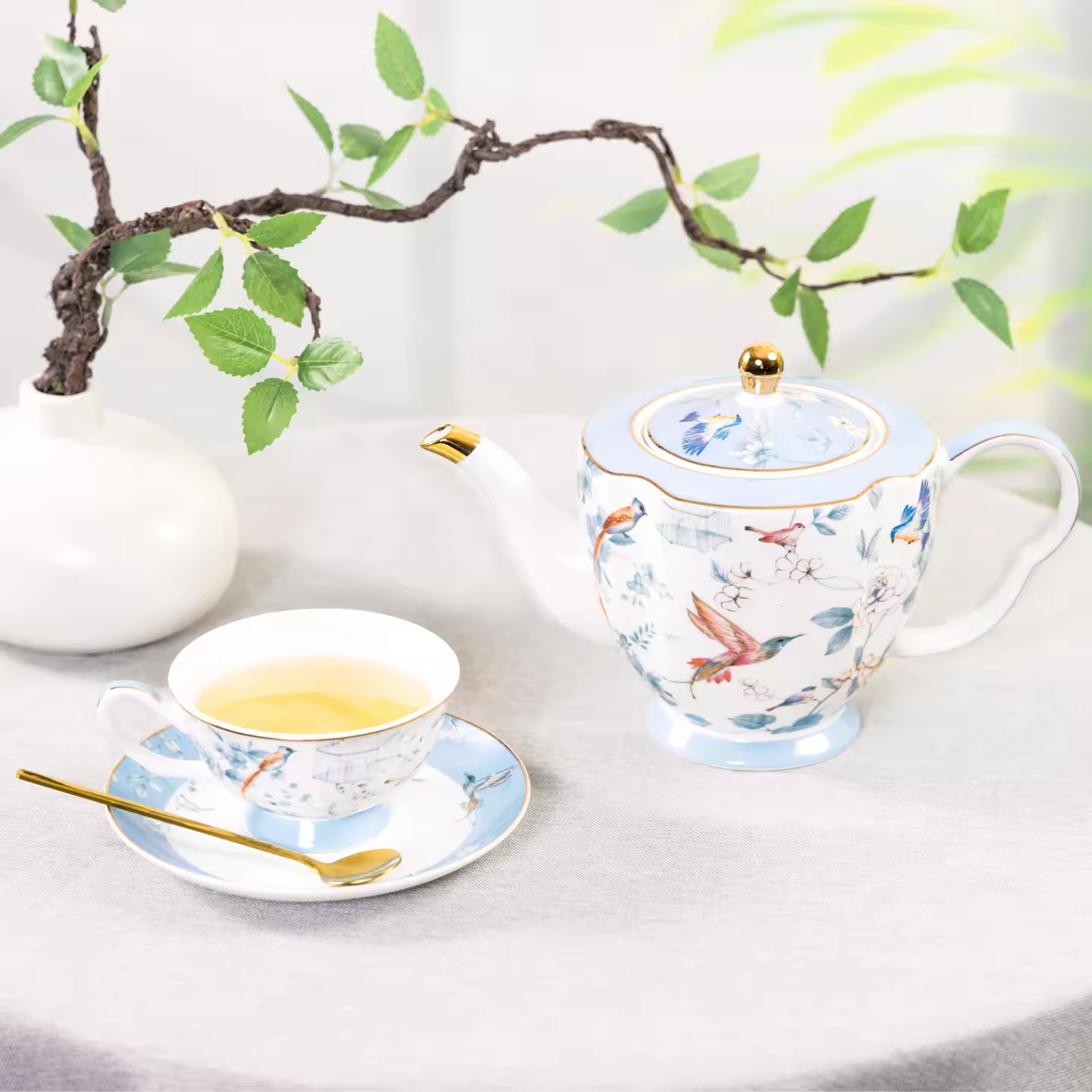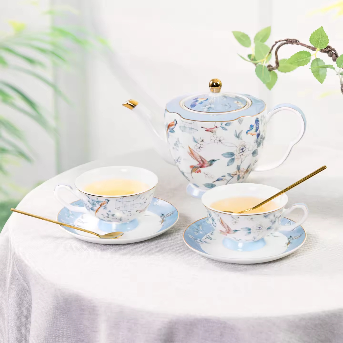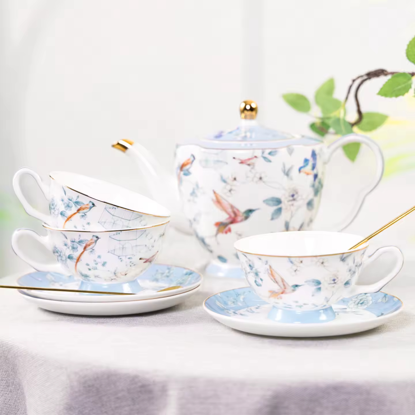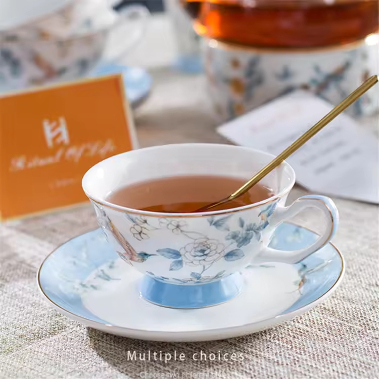 Bone China English Tea Set Coffee Cup Saucer Set Multicolor Light Luxury High-End Gift Box Cartoon Cat Design Durable