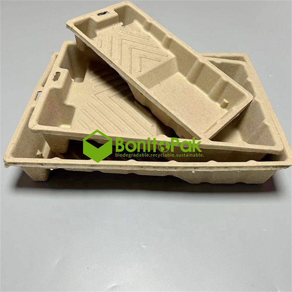 BonitoPak Custom Eco Friendly Paper Pulp Molded Roller Paint Tray Biodegradable