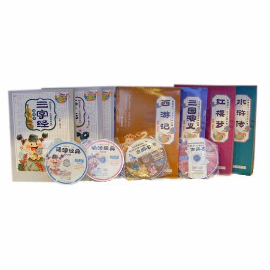 As shown are books including some Chinese strory books and Chinese poems. A CD is included in each book for more fun. These books help develop kids' interests in reading. Kids can learn more about Chinese culture in reading these books too.