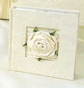 Designed with Mulberry paper, this exquisite photo album flaunts exceptional rough paper cover. Paper-folding rose with green leaves embellishment is distinctly located at the center as the cardinal decoration. It is case bound and provides you ample spaces for storing your valuable moments.