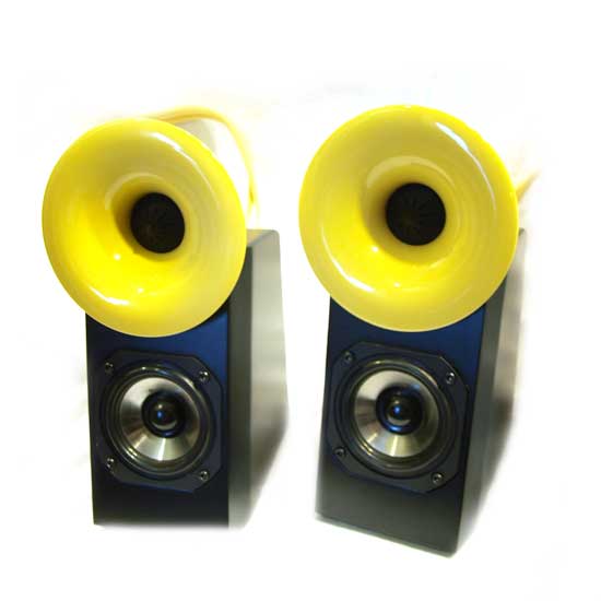 This pair of bookshelf speakers boasts black rectangular cabinets with lemon yellow tweeters, evoking a sense of vogue. It is professionally engineered to offer deeply compelling sound quality. These loud speakers make a perfect combination of style and function.