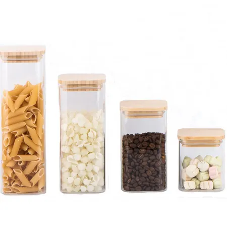 Borosilicate Glass Food Jar with Stacked Up Bamboo Lid