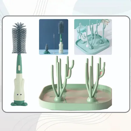 Item: FA02 Bottle Drying Rack and Milk Bottle Brush Material: Silicone & PP Drying Rack Size: 20.8 x 20.8 x 14.5 cm Brush size: 28.5 x 6 cm Packing: 4C Window Box Set of 2 pcs H.S. Code: 39249000 |